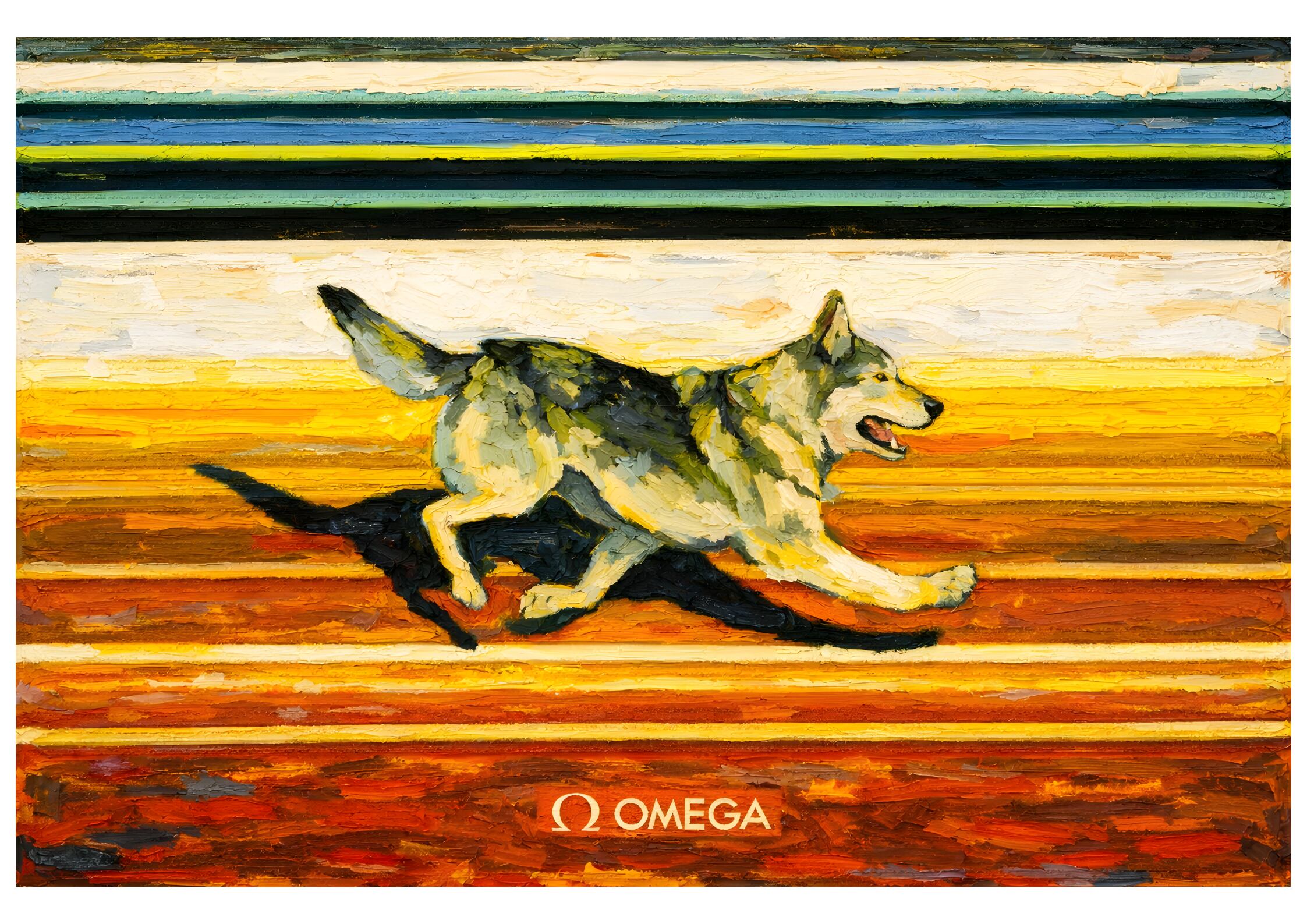 ミラノ・コルティナ五輪クロスカントリー競技で話題となった「犬乱入ハプニング」をモチーフにしたヴィンテージ風アートポスターです。