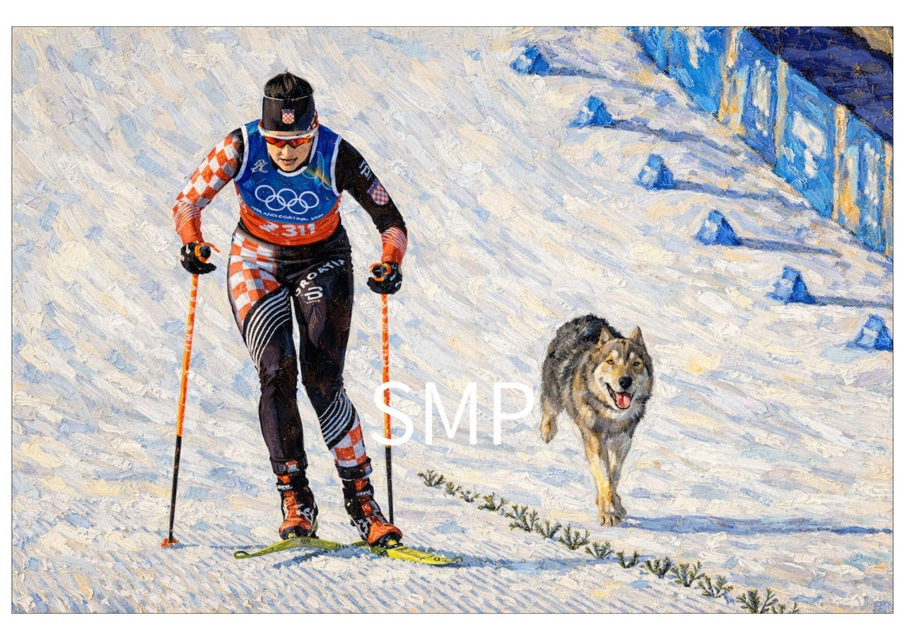 クロスカントリー五輪 犬乱入フォトアートポスター|ミラノ・コルティナ五輪記念 スポーツ写真 A2サイズ