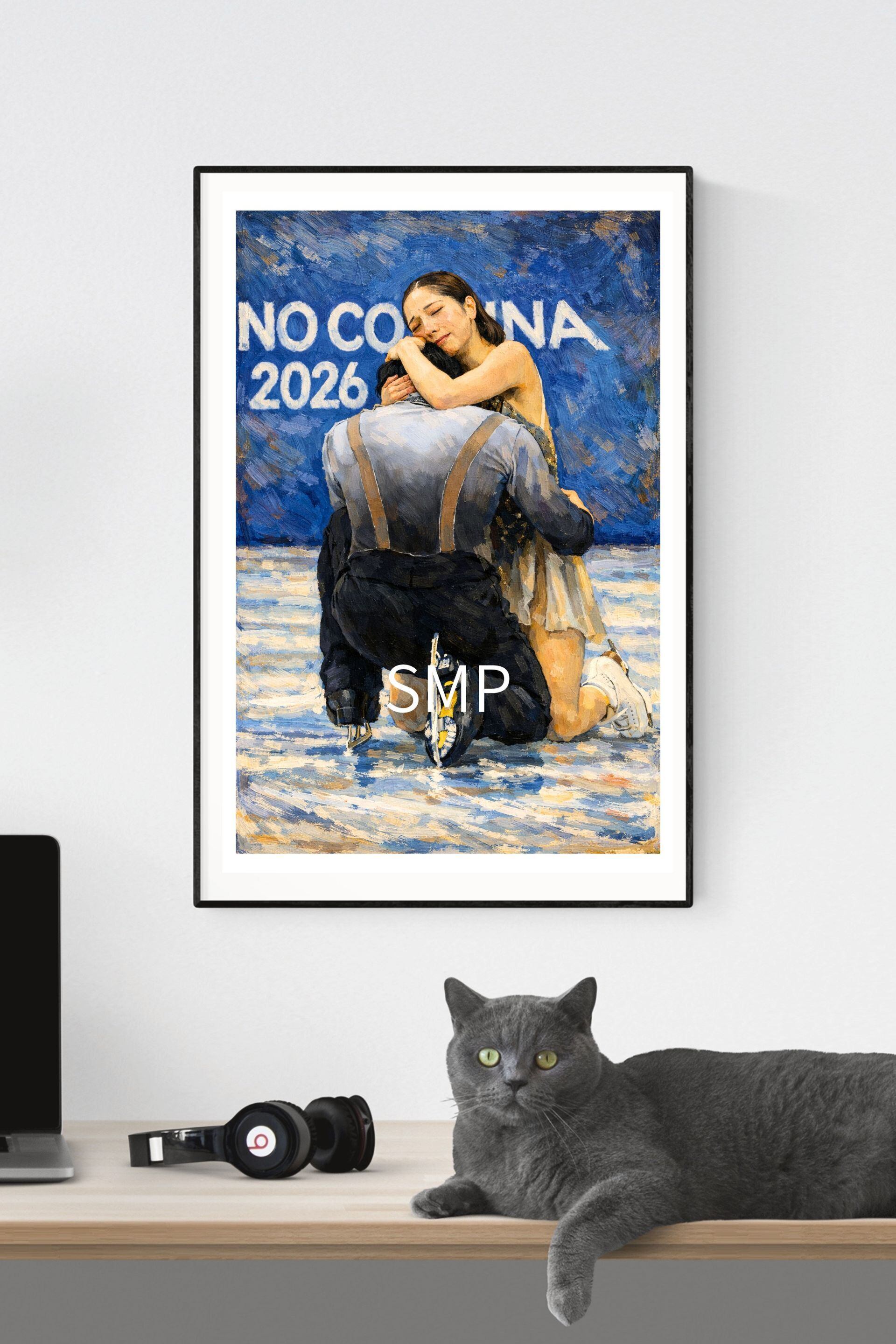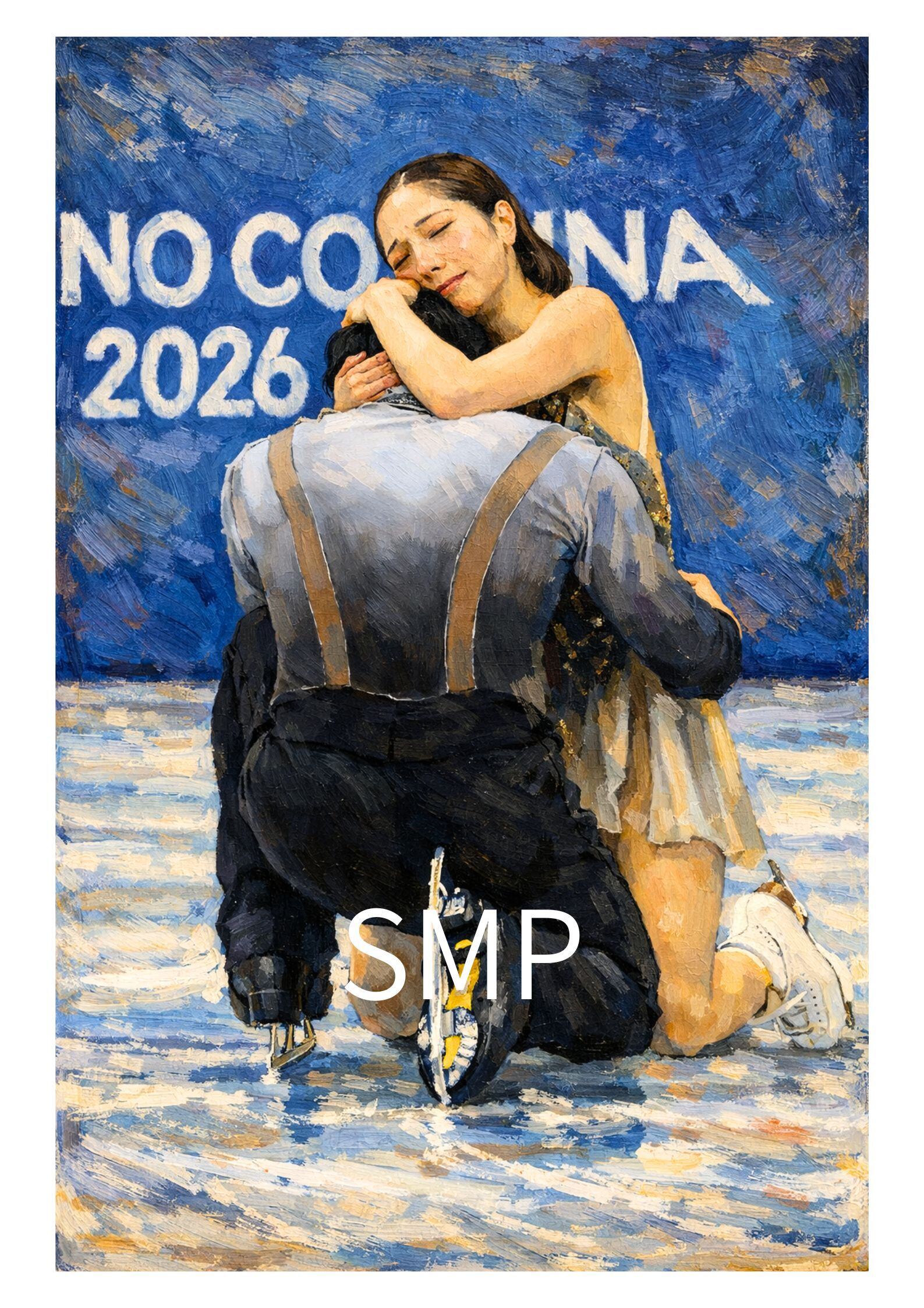フィギュアスケート金メダル記念アートポスター|三浦璃来・木原龍一 感動シーン風ヴィンテージアート A2サイズ