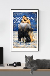 フィギュアスケートの感動的な瞬間をヴィンテージアート風に表現したポスター作品です。
