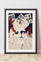 **「境川浪右衛門 × 梅ヶ谷藤太郎」取組図(国利画)**をモチーフにした、A2サイズのヴィンテージアートポスターです。