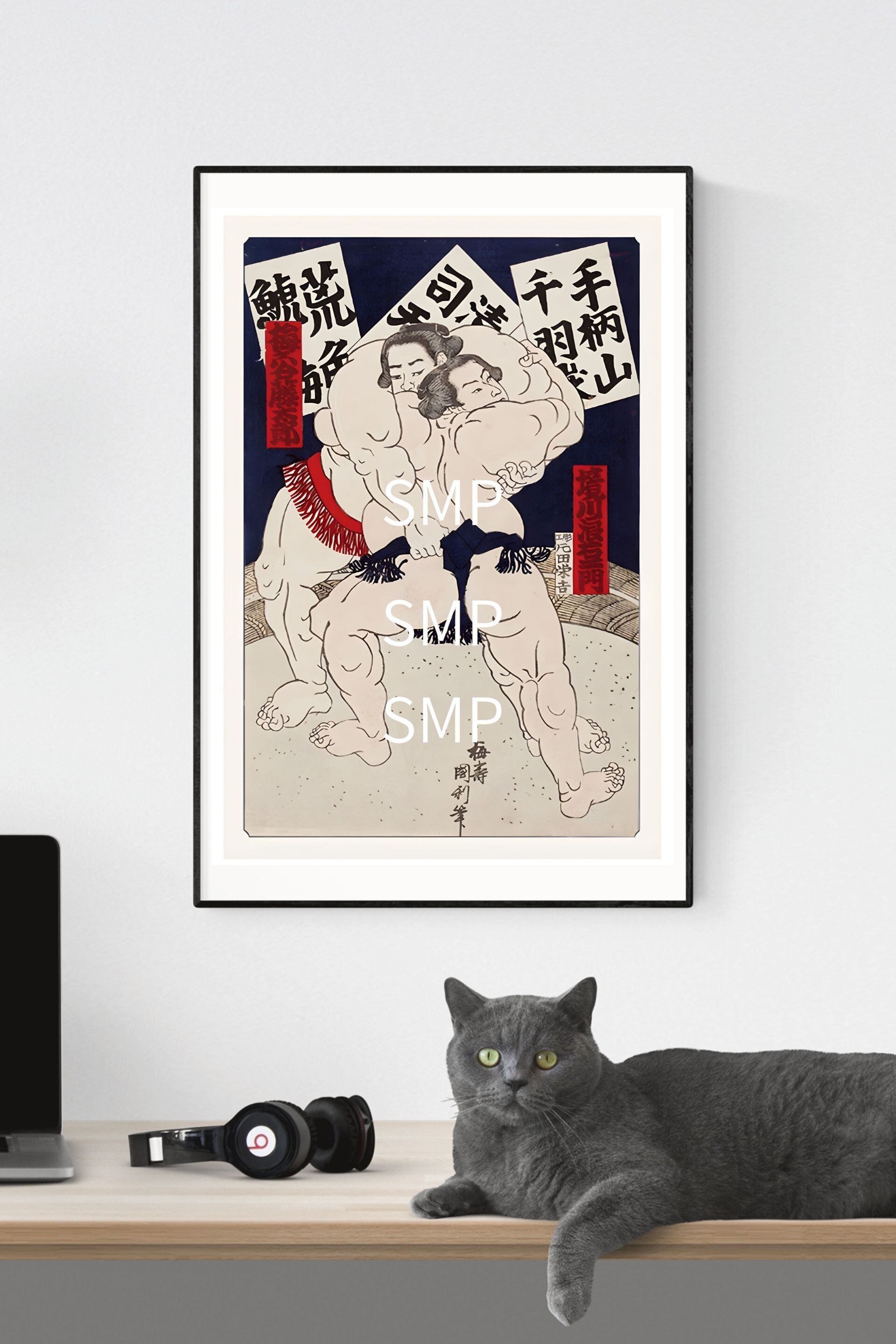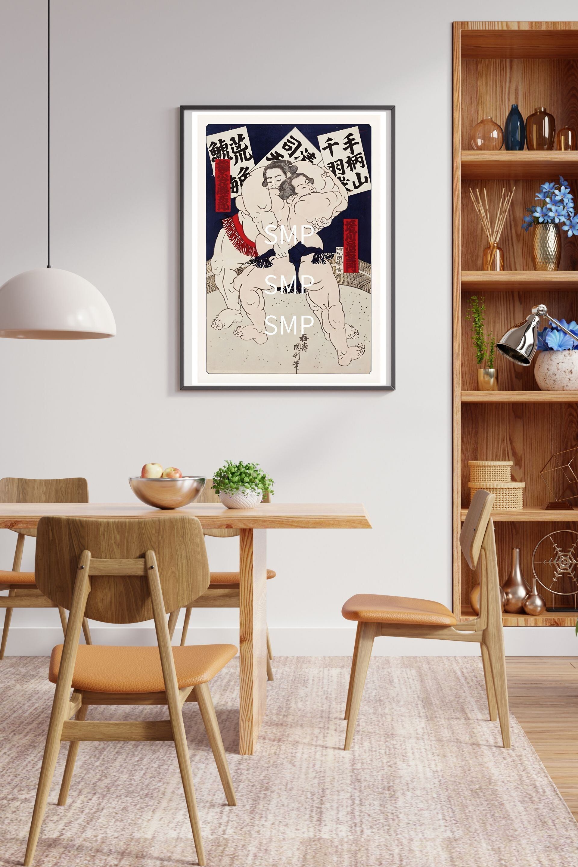 迫力ある力士の構図と伝統的な浮世絵表現は、日本文化・和風インテリア・アート好きの方におすすめ。