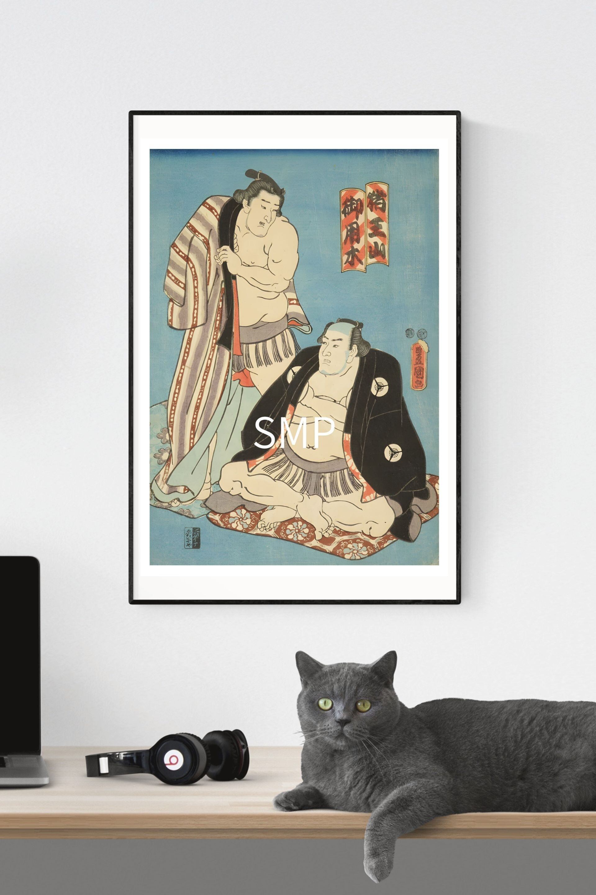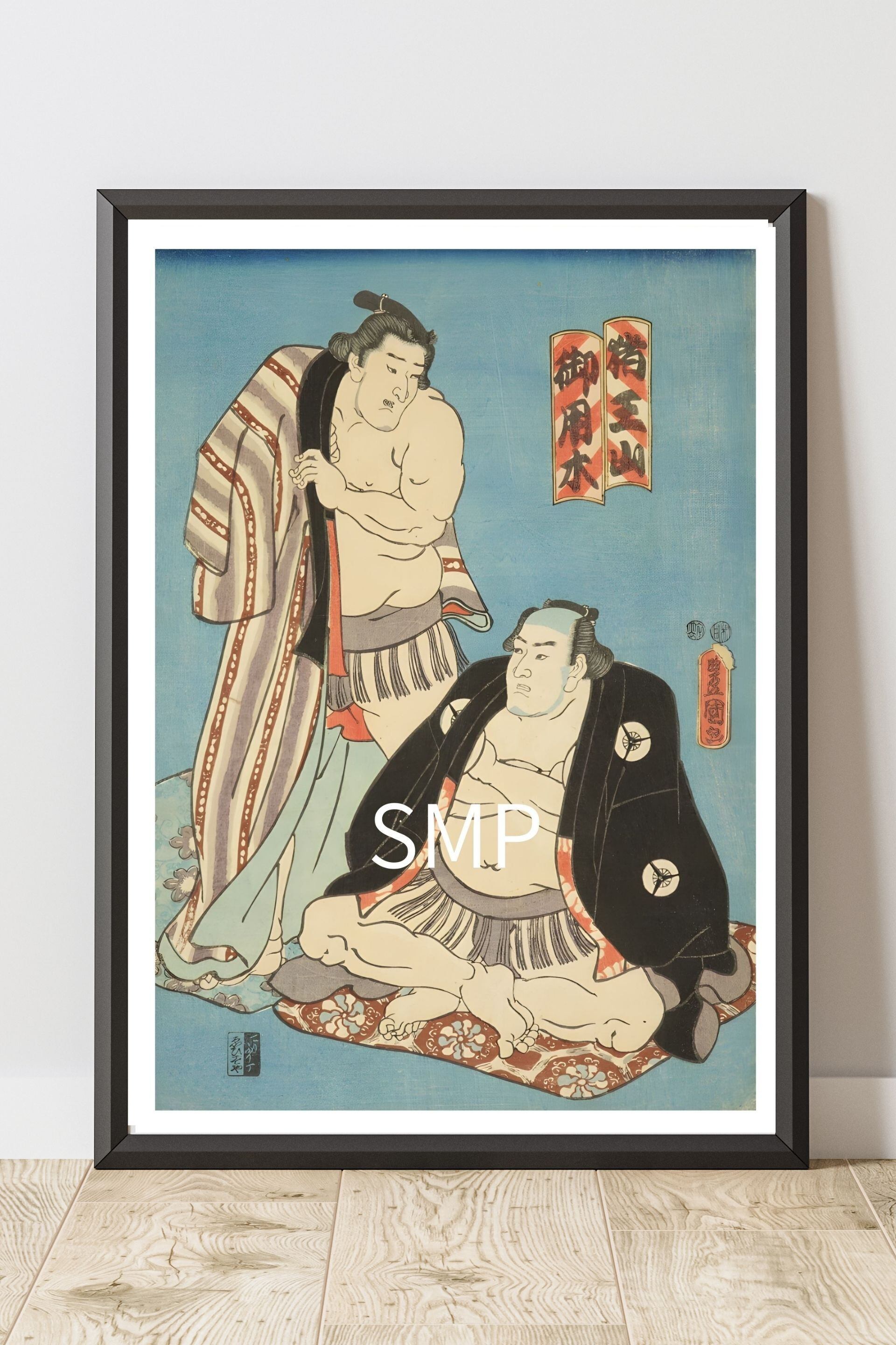 浮世絵 相撲絵 二力士図 模写レプリカ A2和風ポスター 江戸文化インテリア UKIYOE SUMO 豊国三代