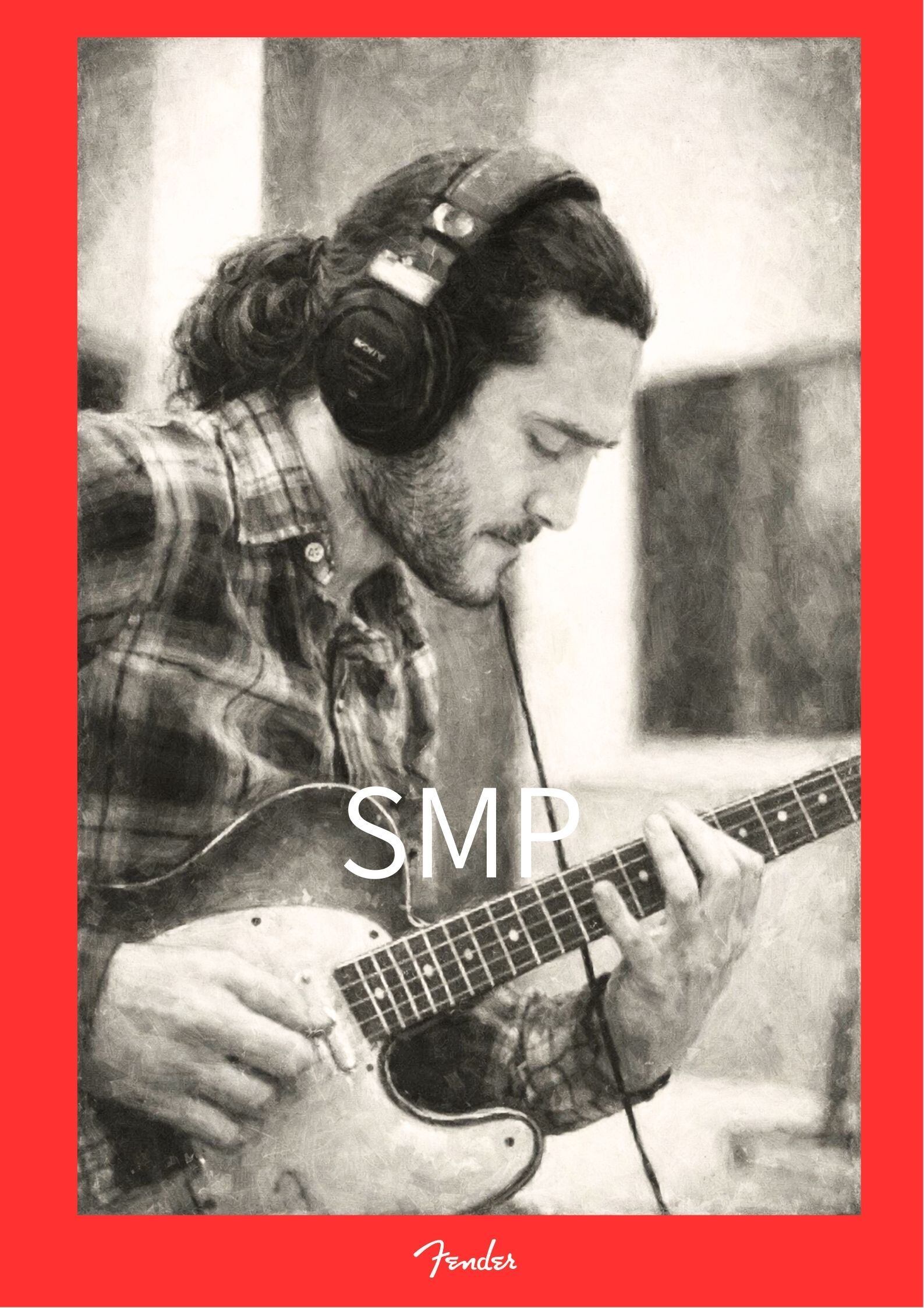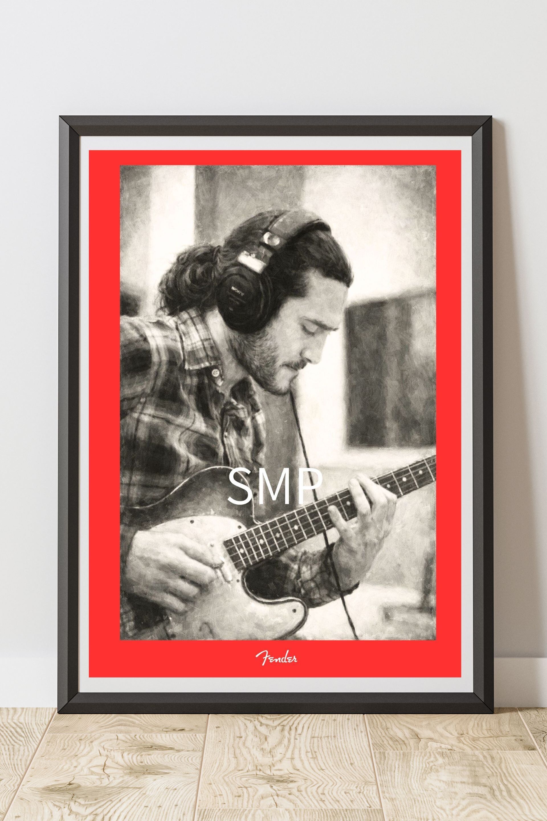John Frusciante モノクロギターポートレート A2ポスター|ヴィンテージロックアート Fenderギター