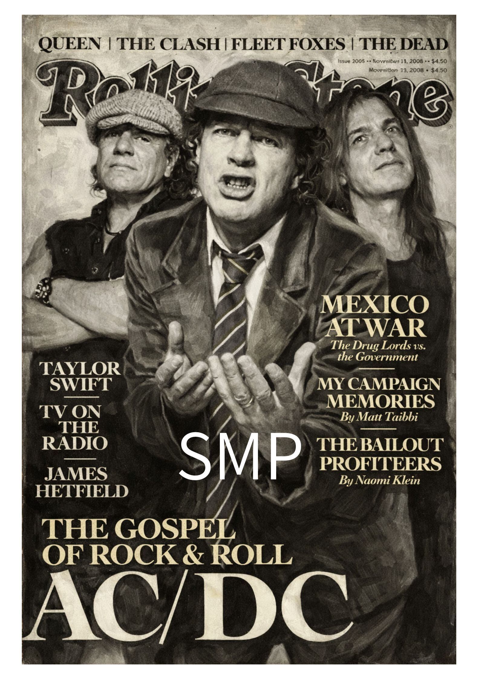AC/DC ロック雑誌カバー風 ヴィンテージポスター A2|アンガス・ヤング ロックアート