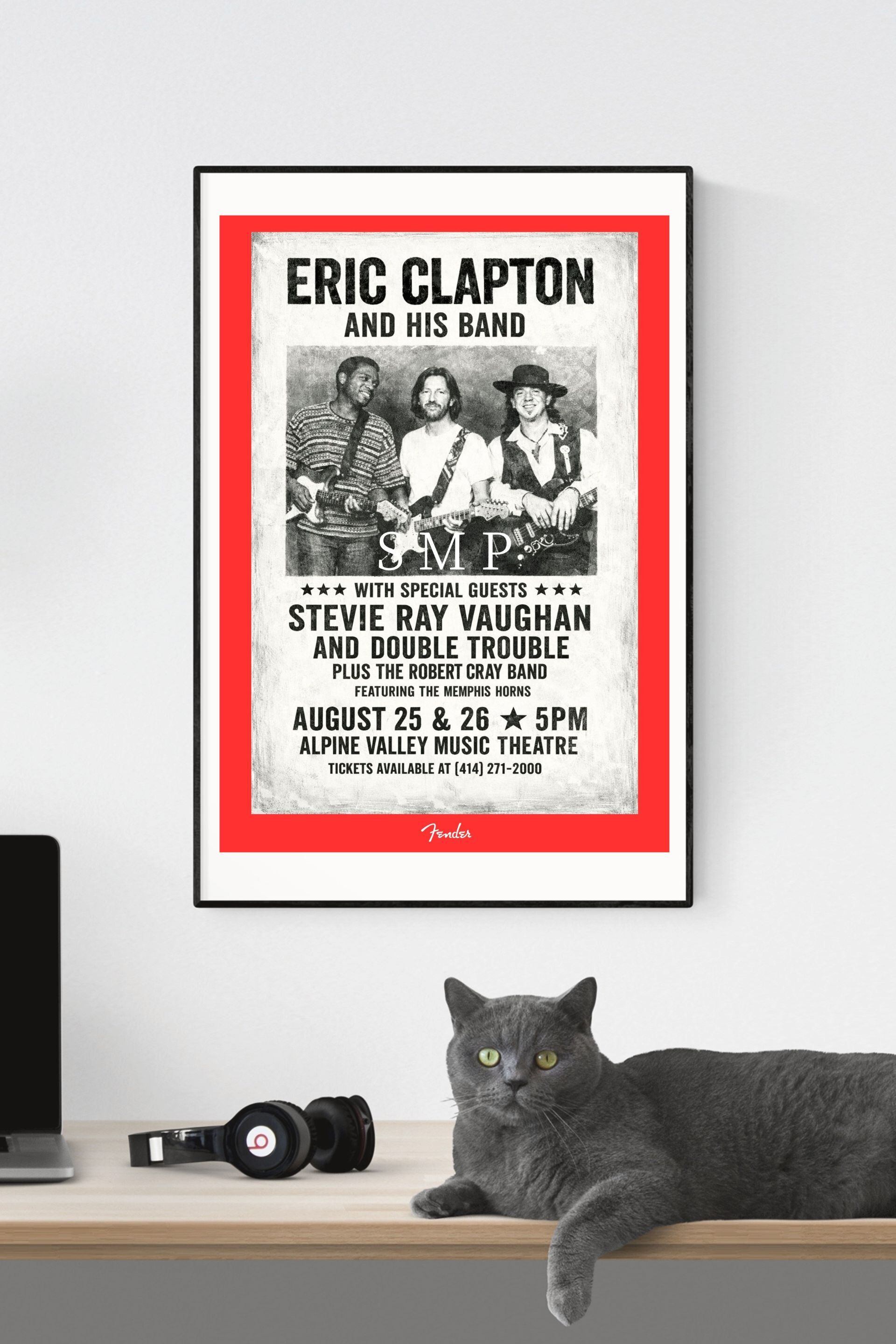 エリック・クラプトン × スティーヴィー・レイ・ヴォーン ヴィンテージライブポスター A2 Eric Clapton Stevie Ray Vaughan Blues Guitar Poster ロック / ブルース / ギターアート