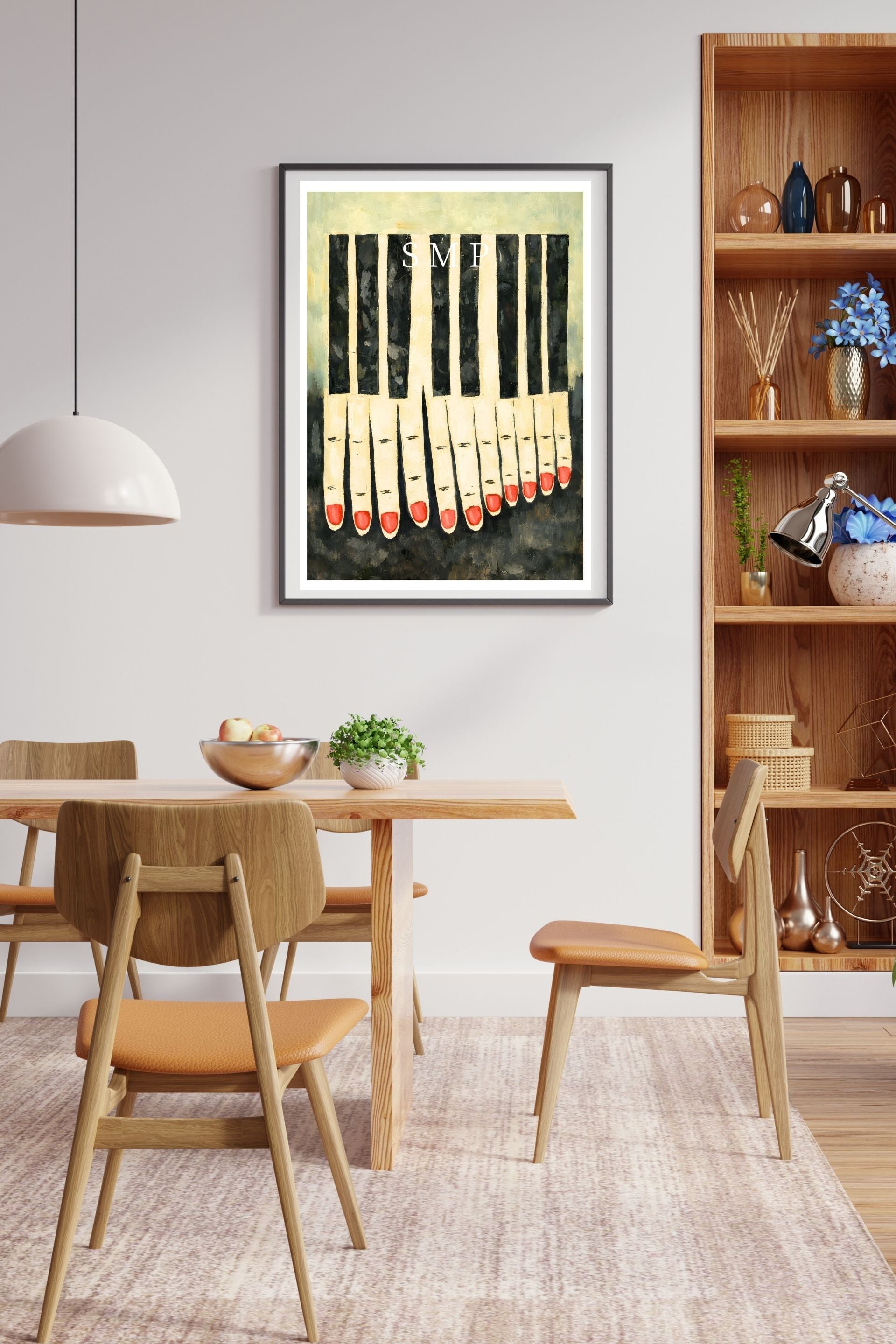ピアノ鍵盤アートポスター A2 Red Nails Piano モダン音楽インテリア ジャズ・ミュージックヴィンテージポスター