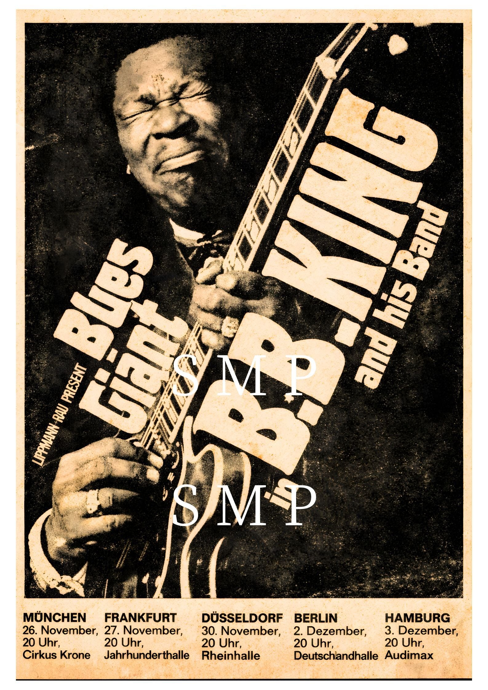 クラシックなブルースツアーポスターの雰囲気を再現。