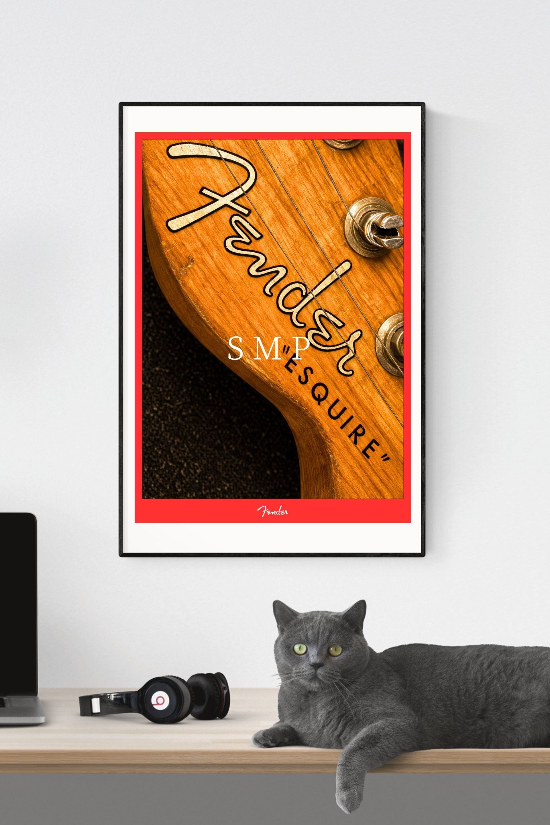 フェンダーギターの象徴的なヘッドストックを大胆に切り取ったヴィンテージギターポスターです。