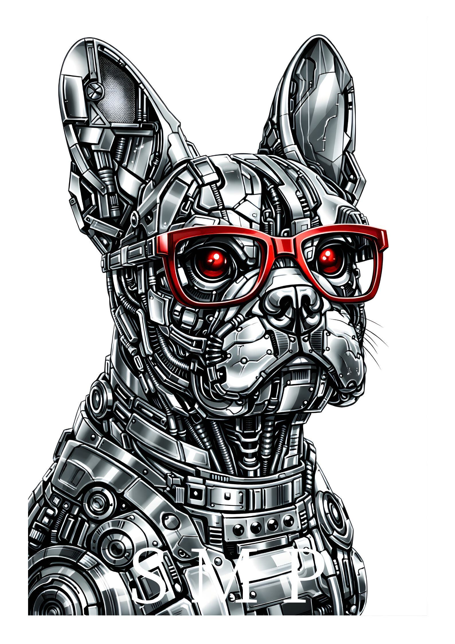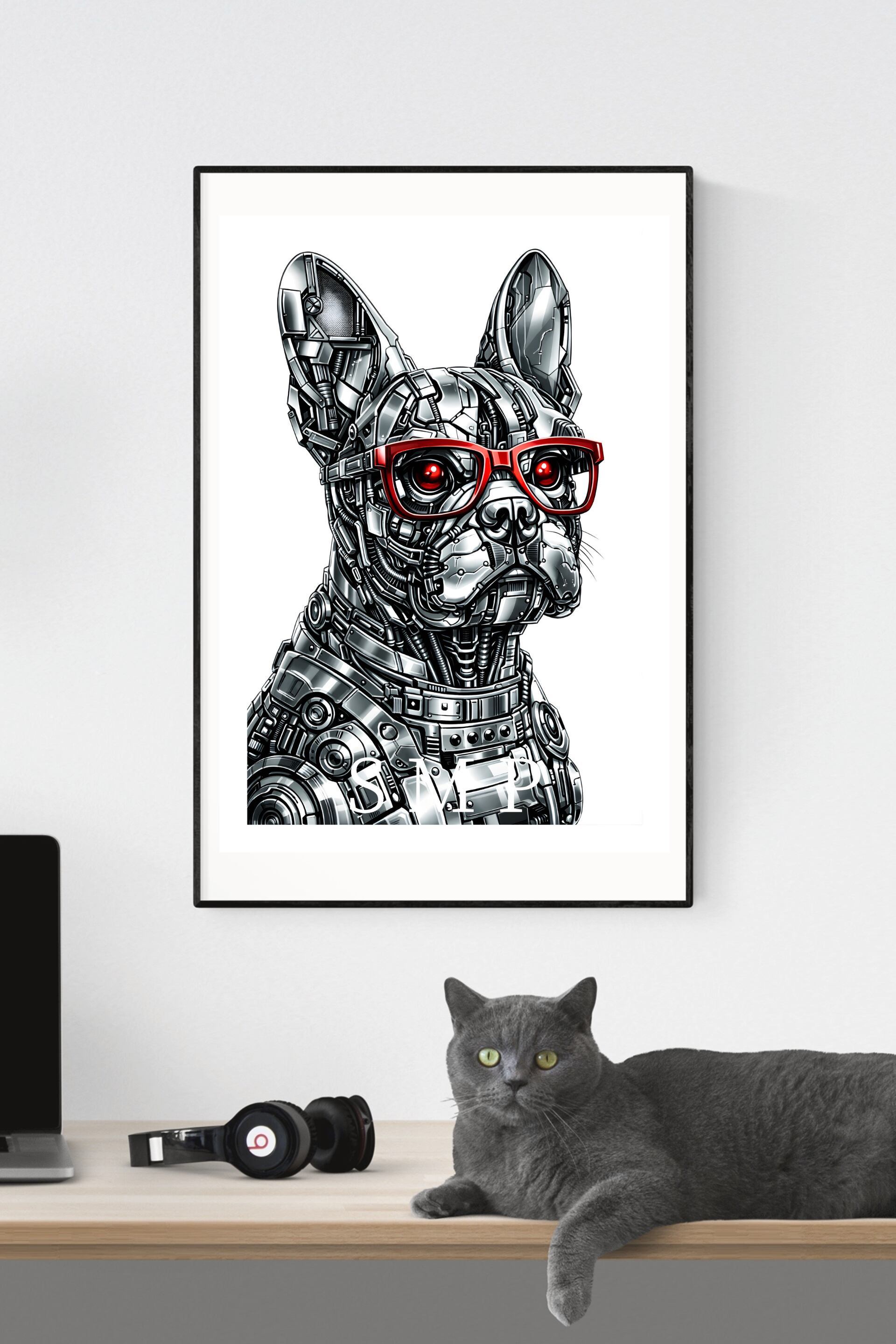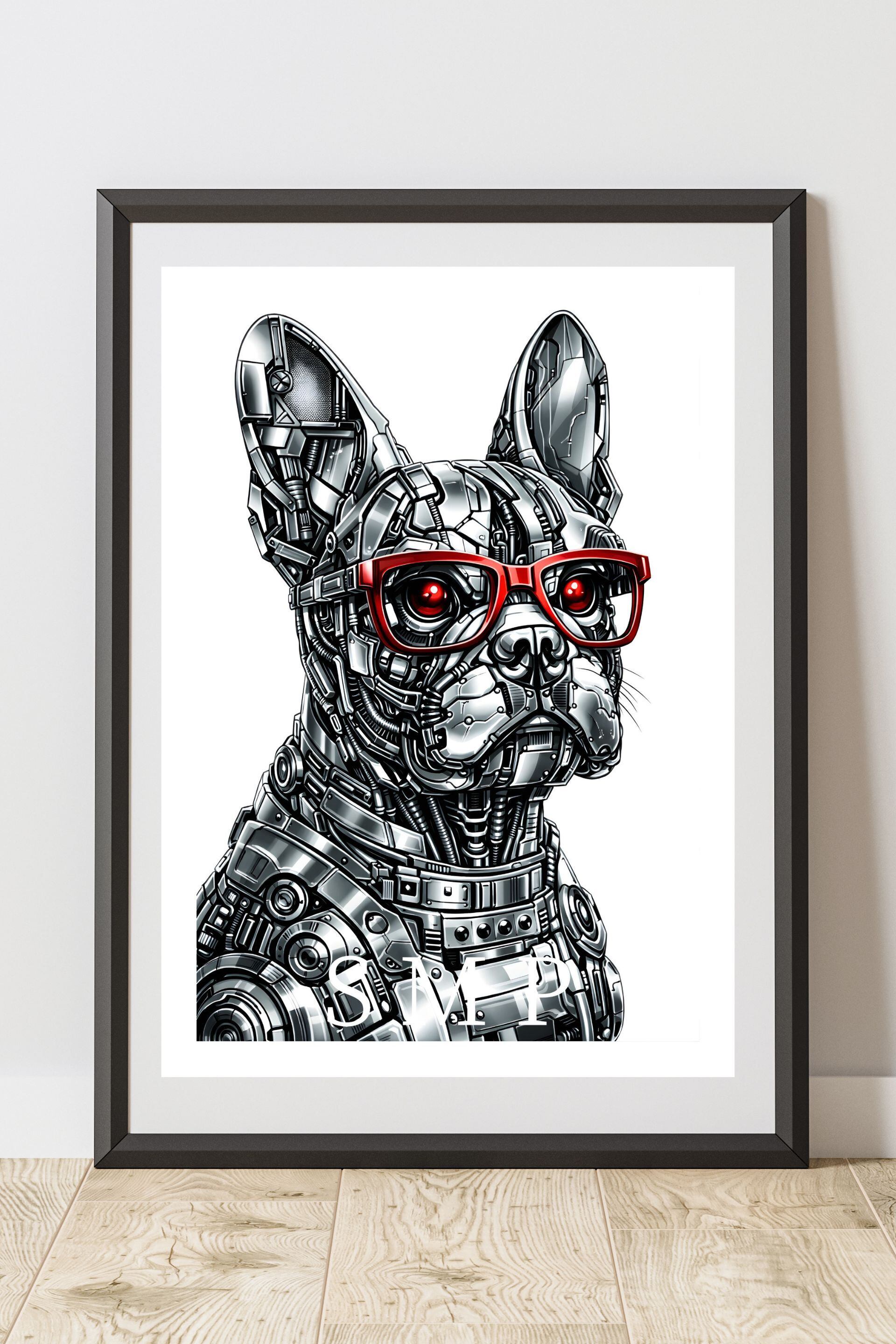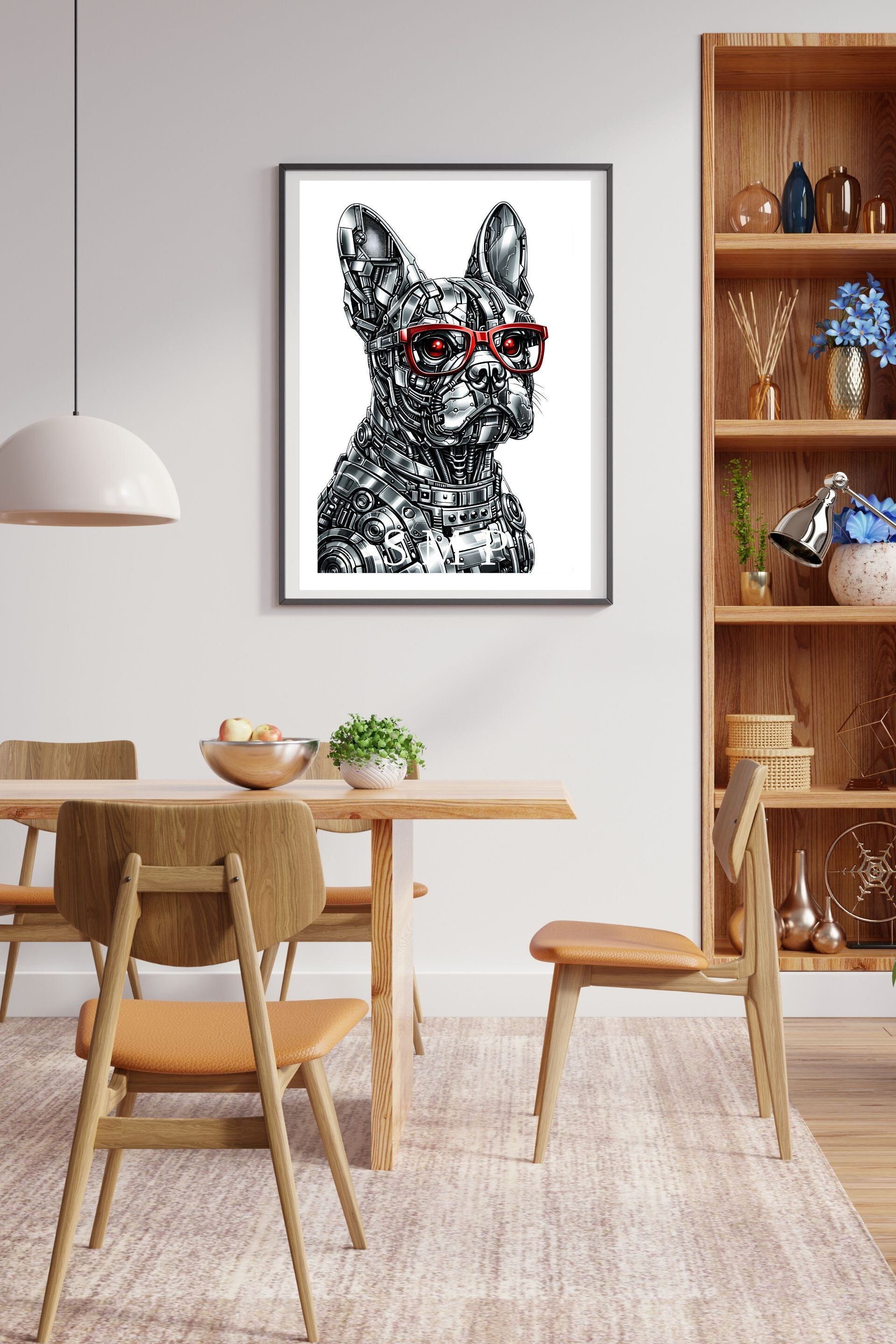 ロボットフレンチブルドッグ サイバーパンクアートポスター メカニカルドッグ SFデザイン インテリアアート A2サイズ