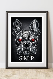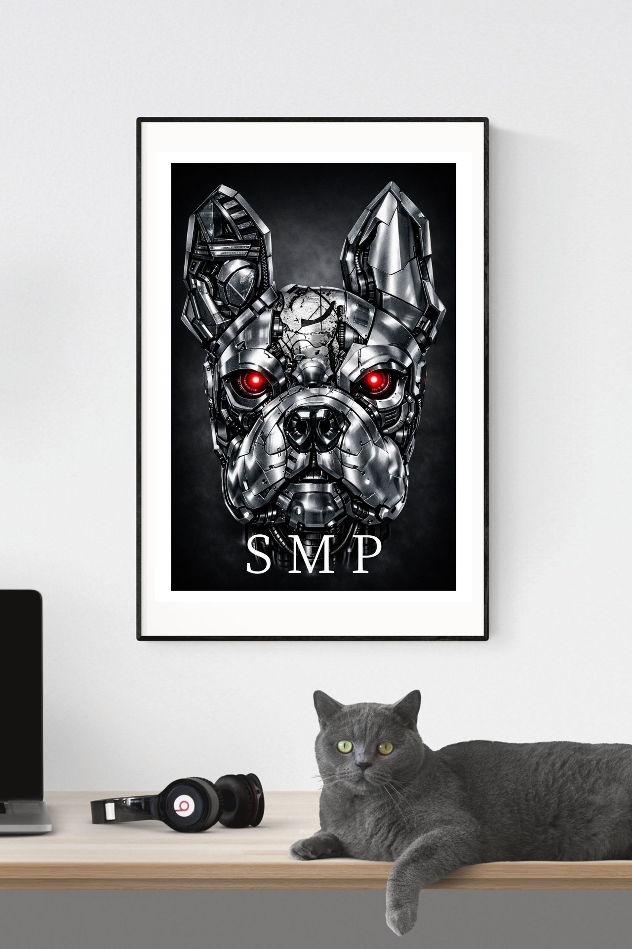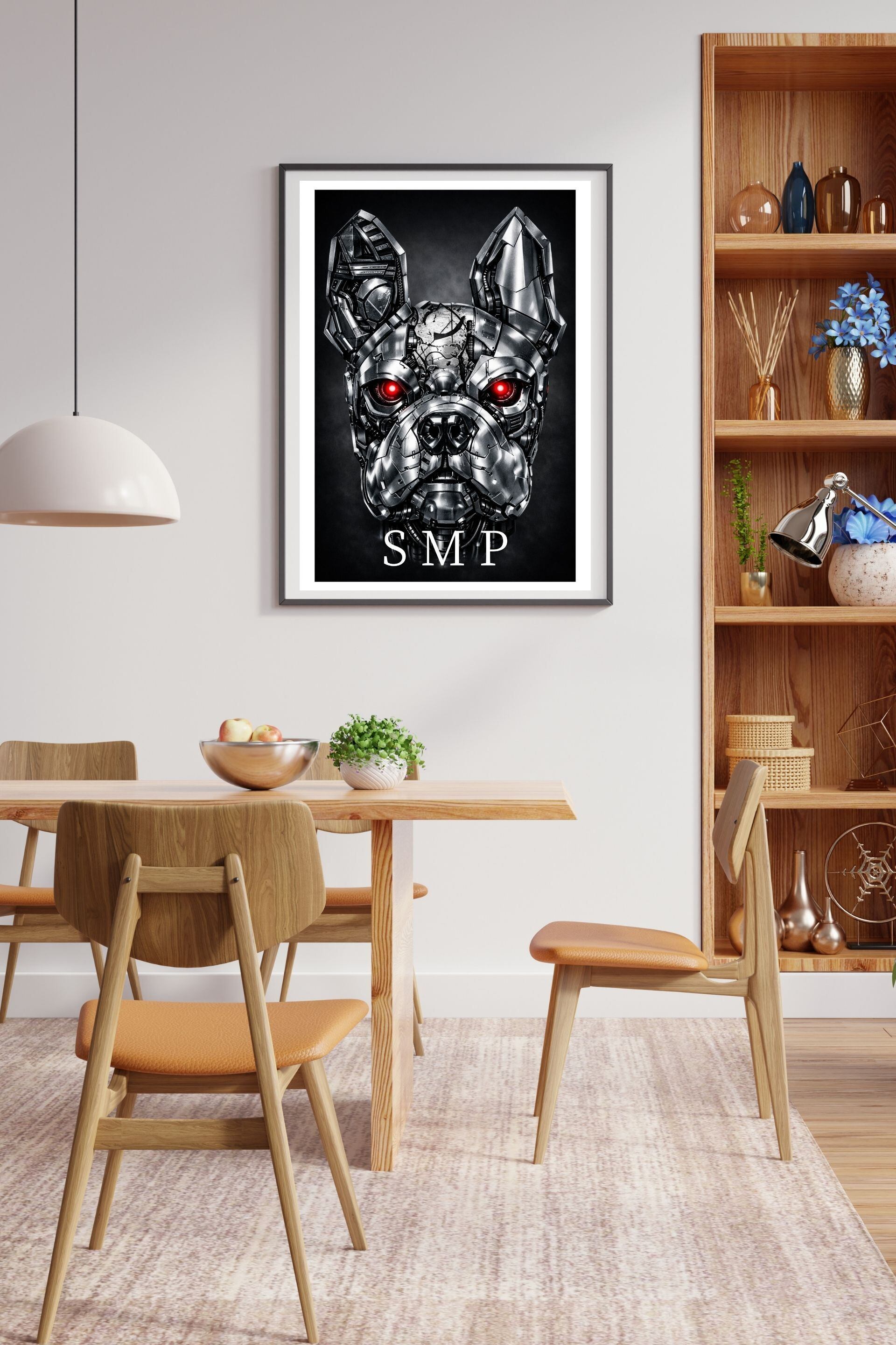サイボーグ フレンチブルドッグ ロボット犬 アートポスター サイバーパンク メカドッグ SFインテリア A2サイズ