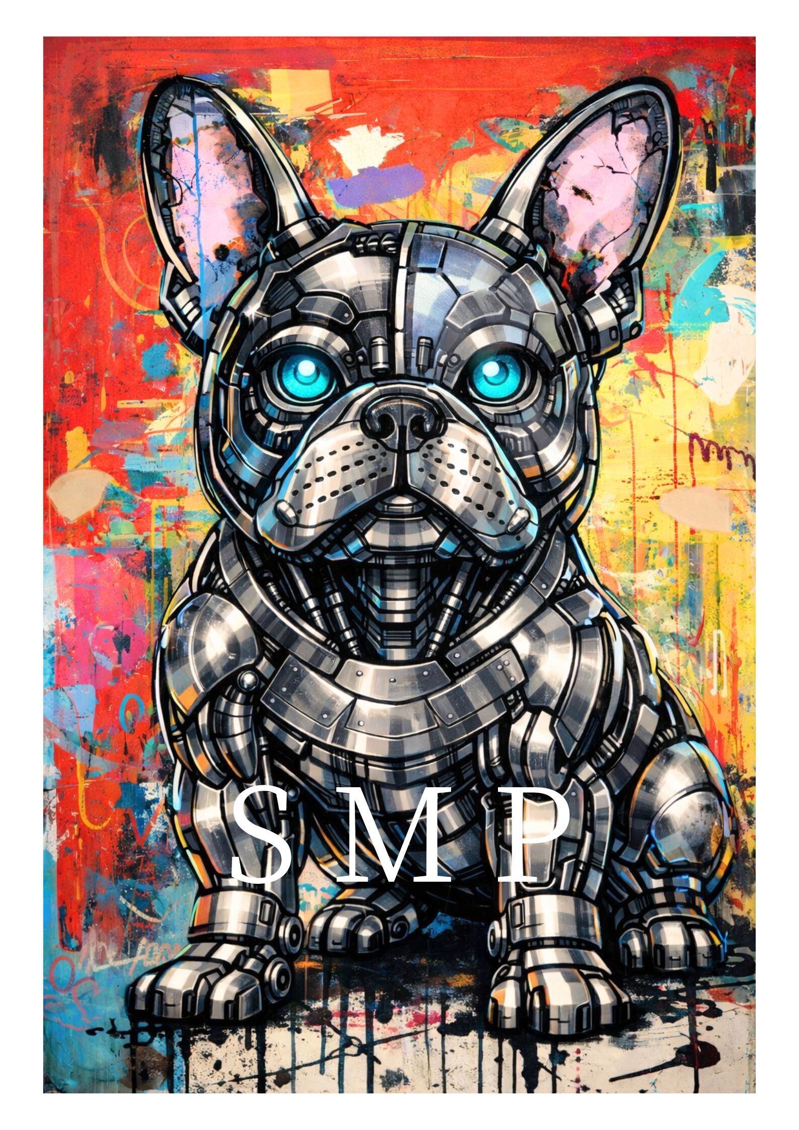 メカドック フレンチブル号 試作3号機 ロボット犬 フレンチブルドッグ サイボーグドッグ SFアートポスター A2