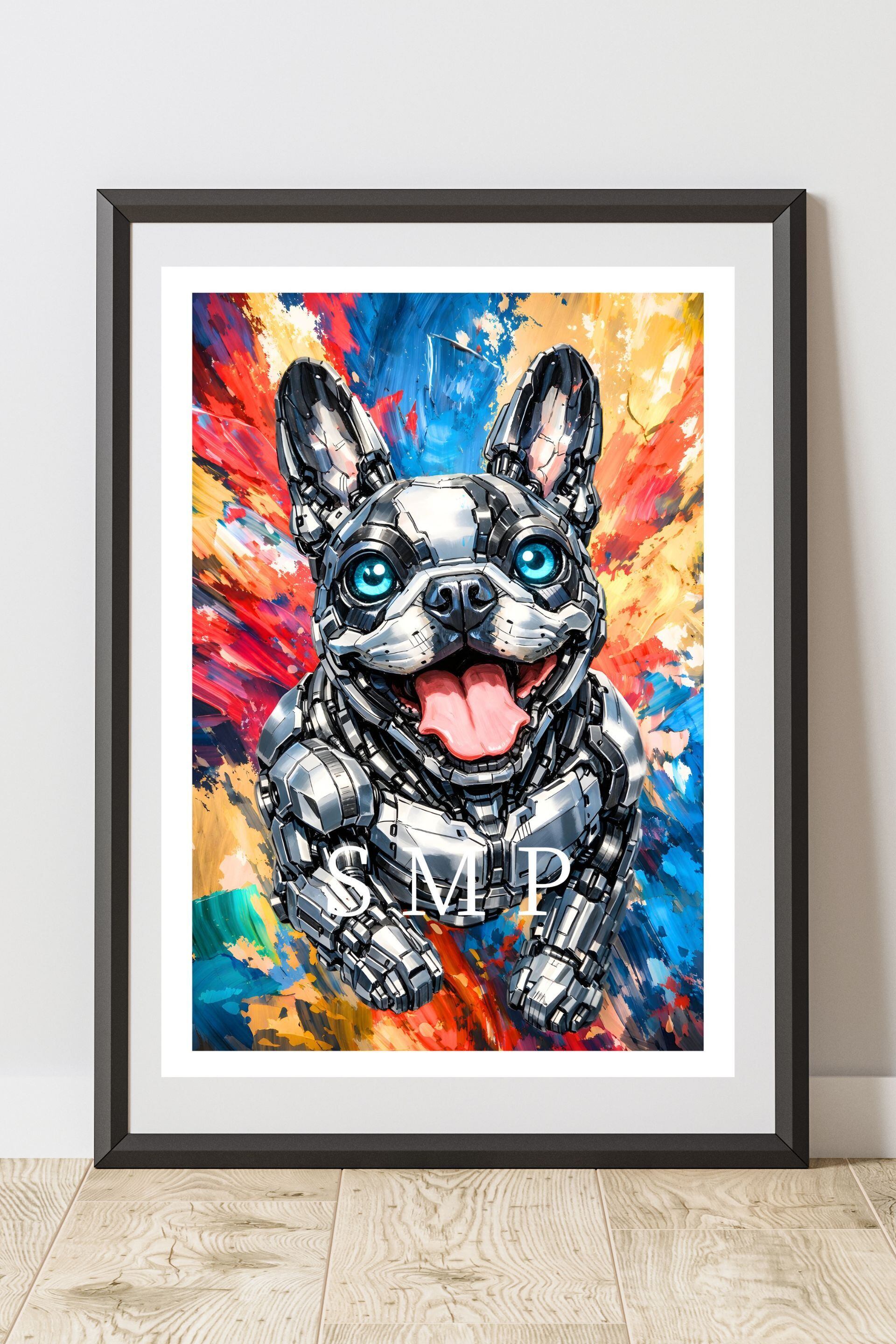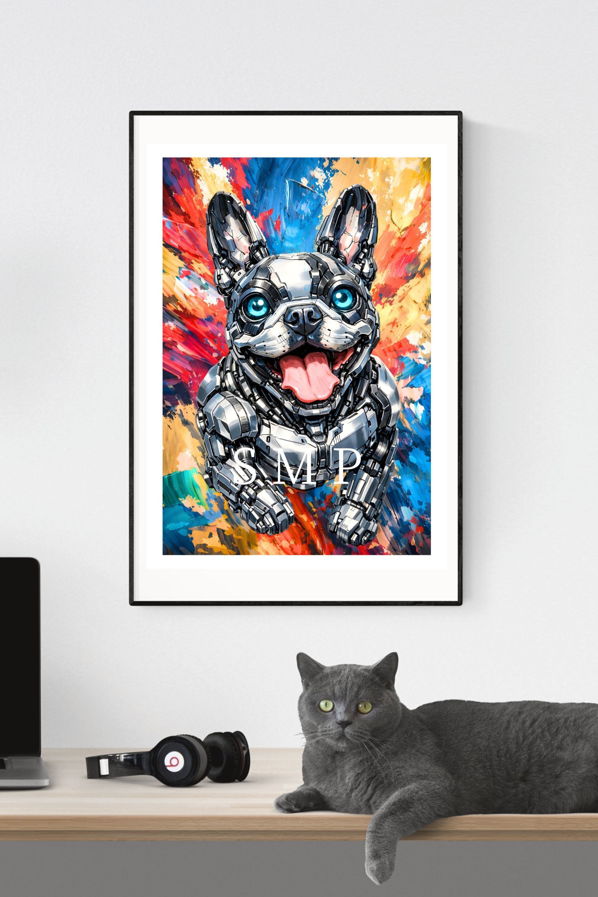 メカドック フレンチブル号 試作4号機 ロボット犬 フレンチブルドッグ サイボーグドッグ ストリートアートポスター A2