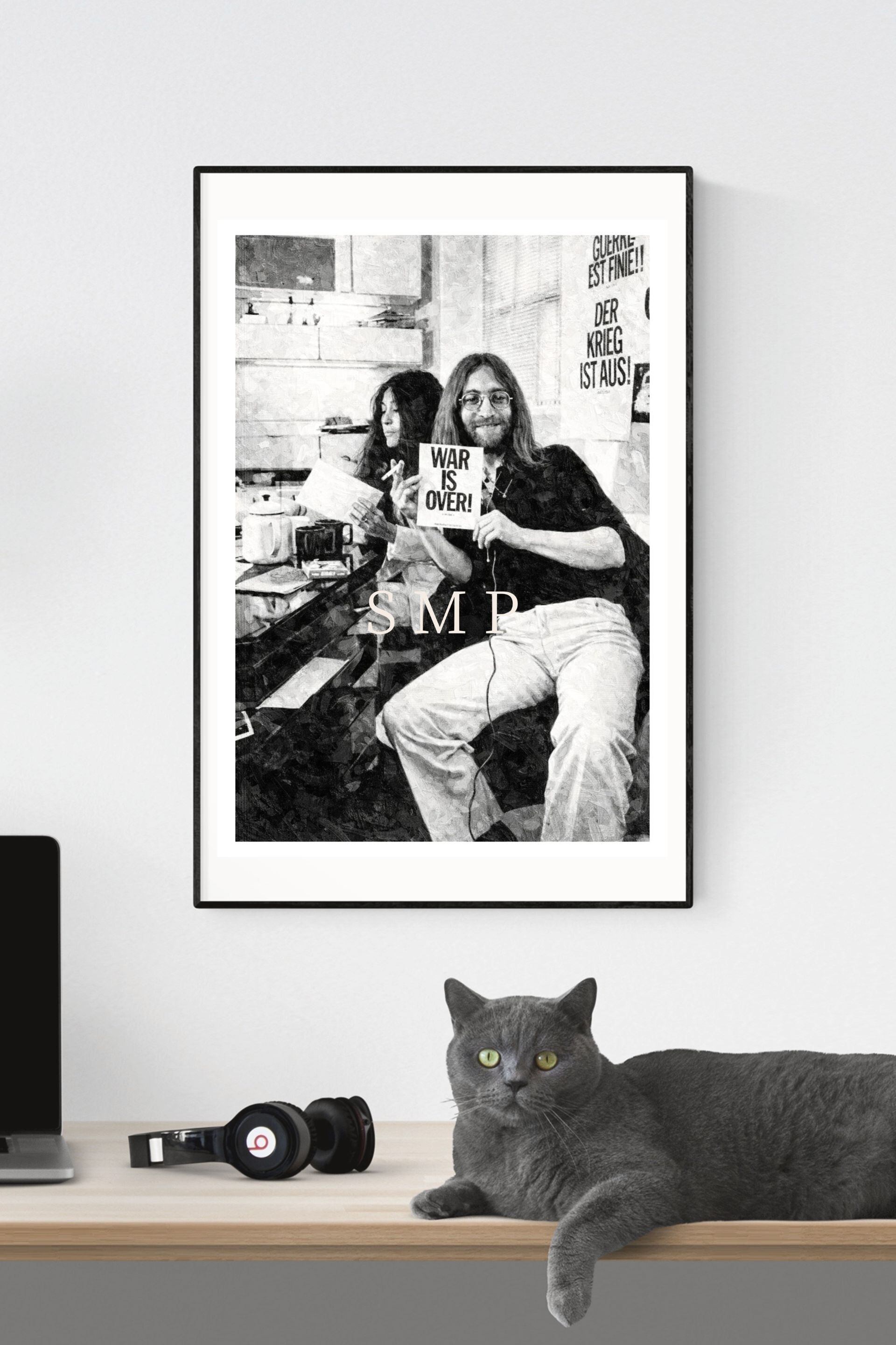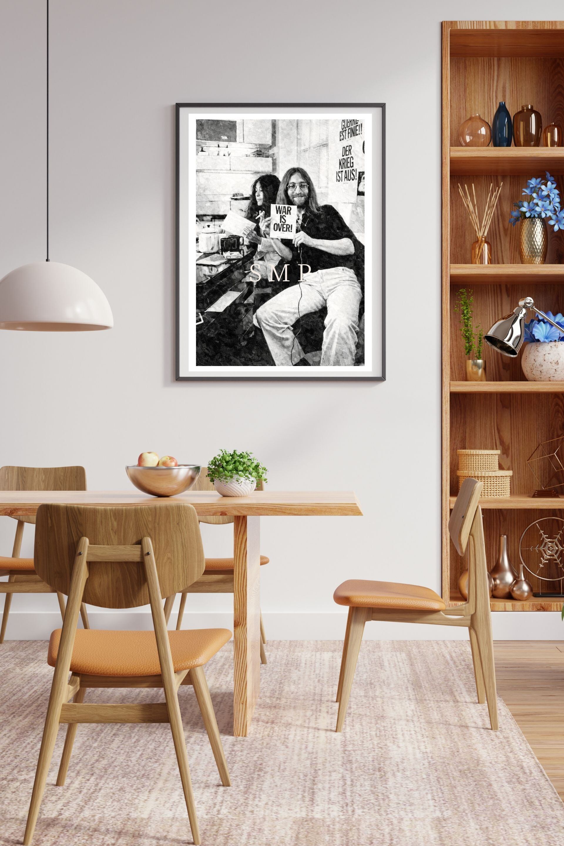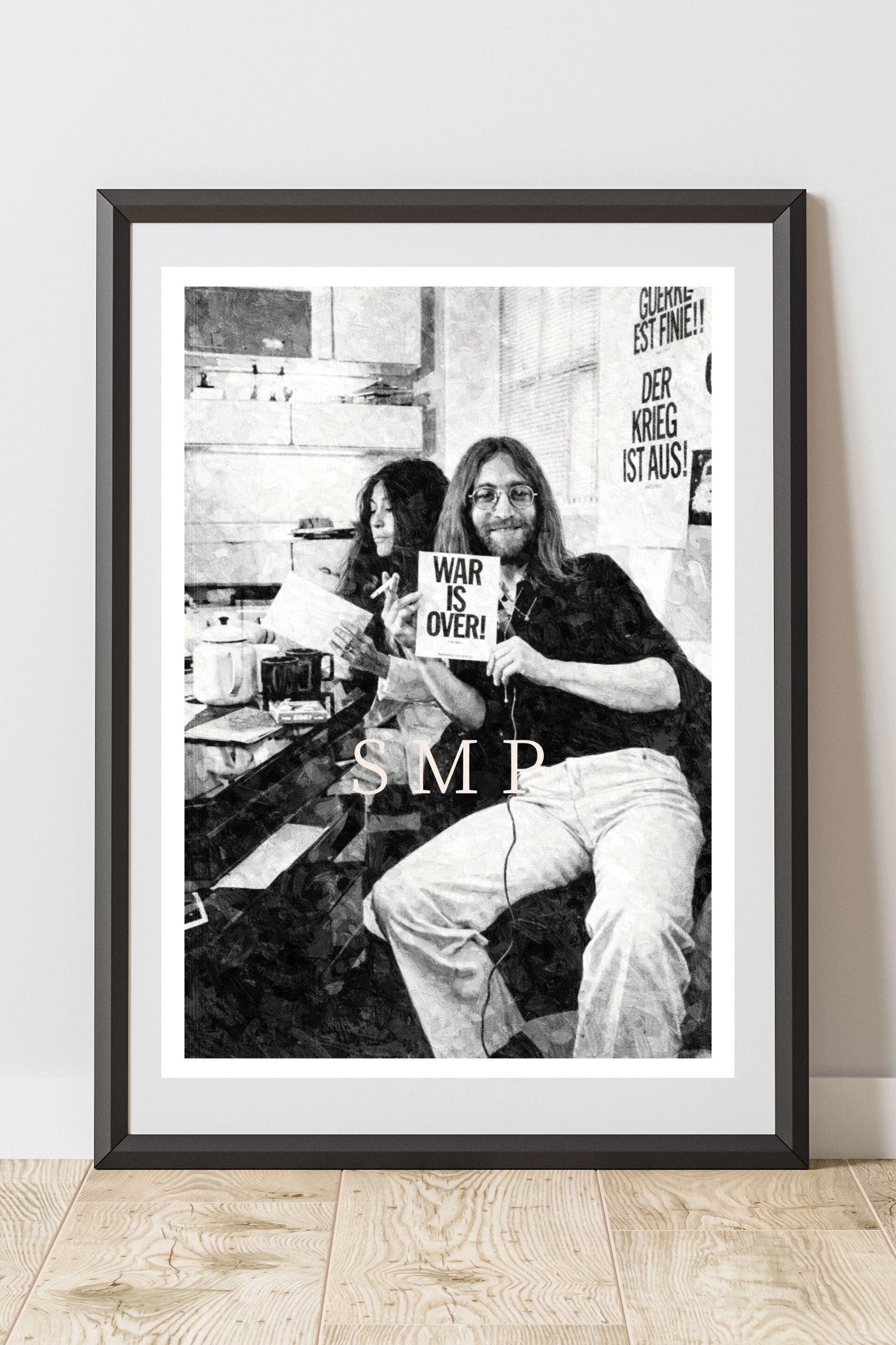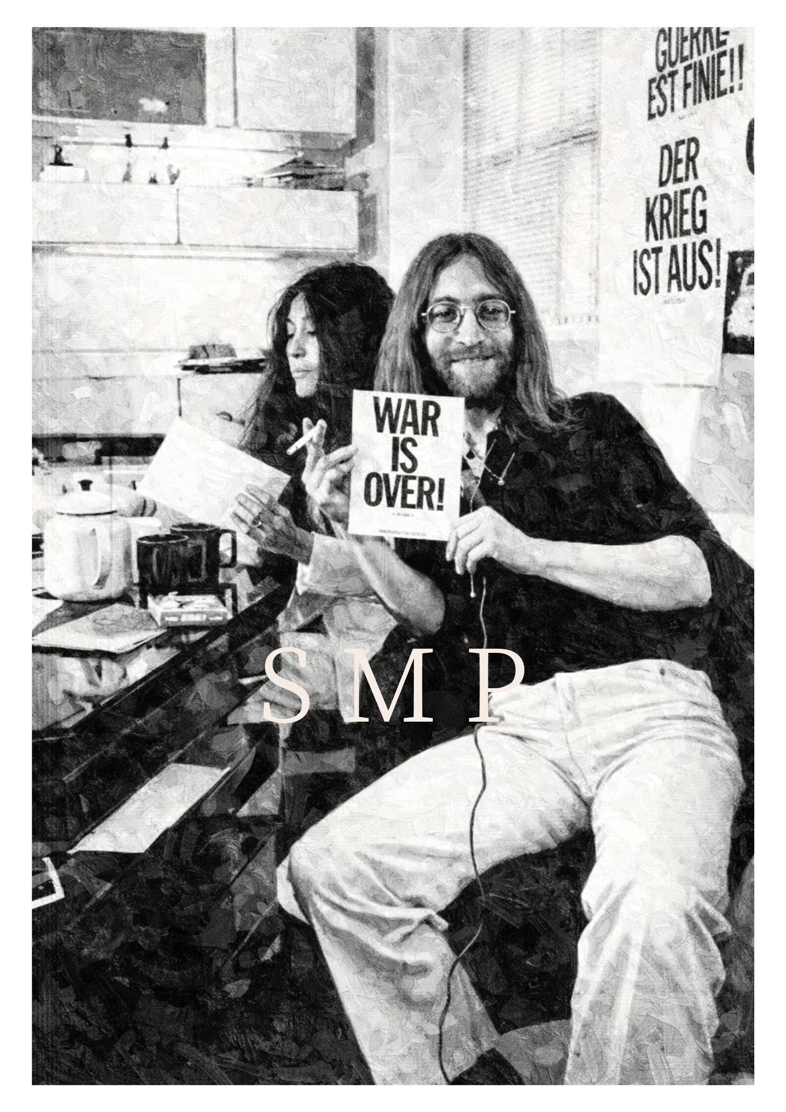 ジョン・レノン オノ・ヨーコ WAR IS OVER ポスター レプリカ ビートルズ 平和キャンペーン モノクロ油彩アート ヴィンテージロックポスター A2