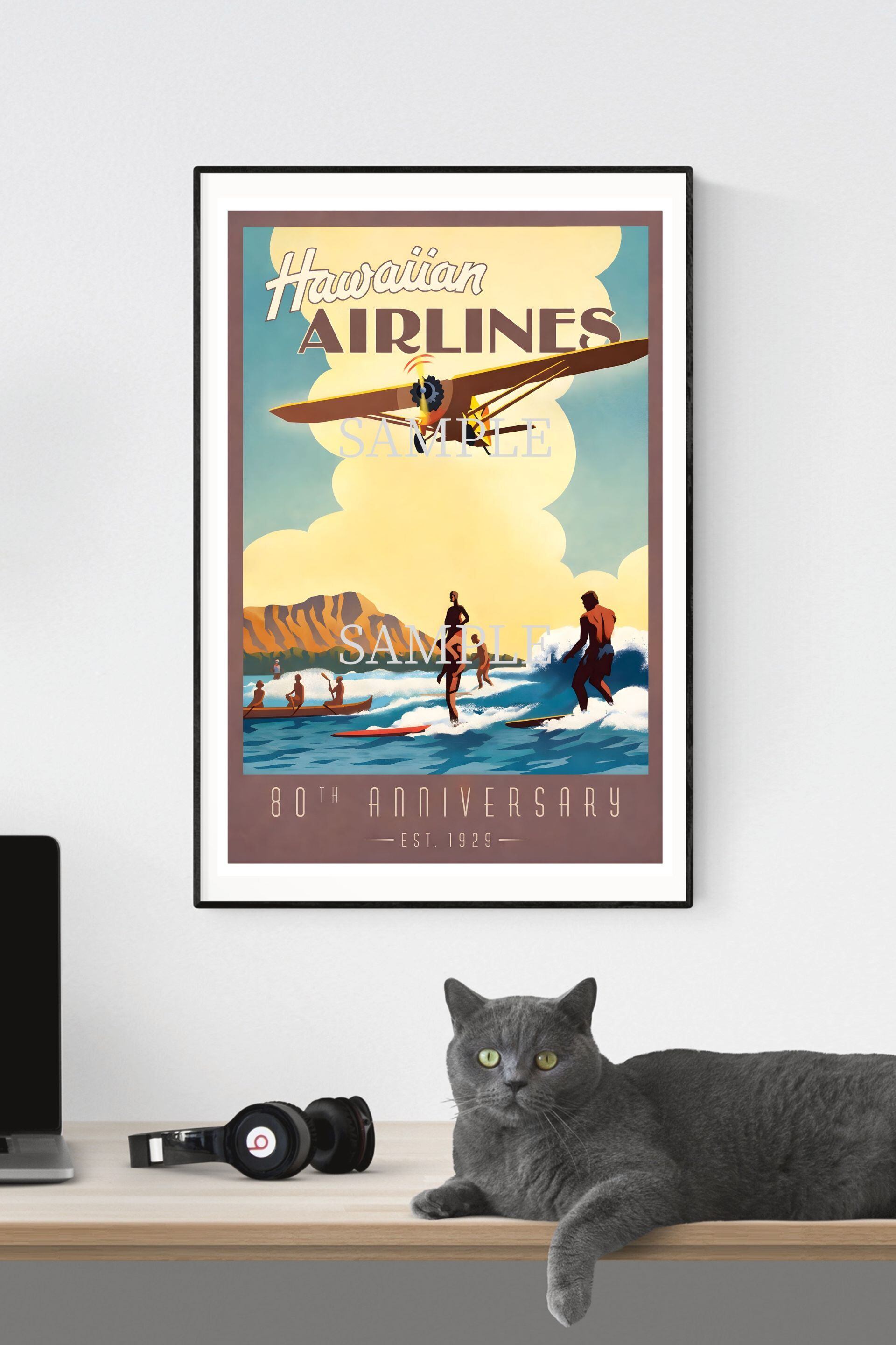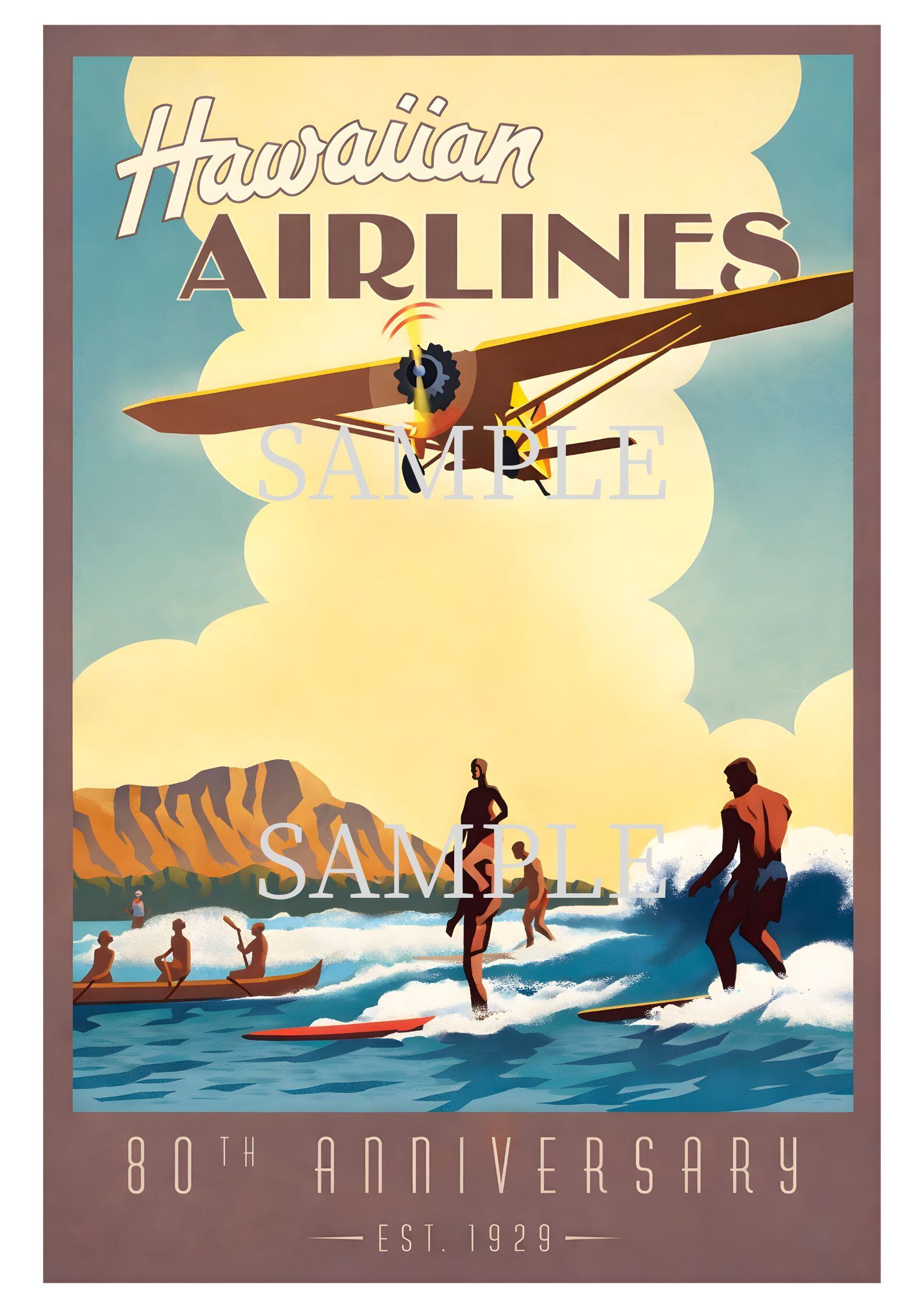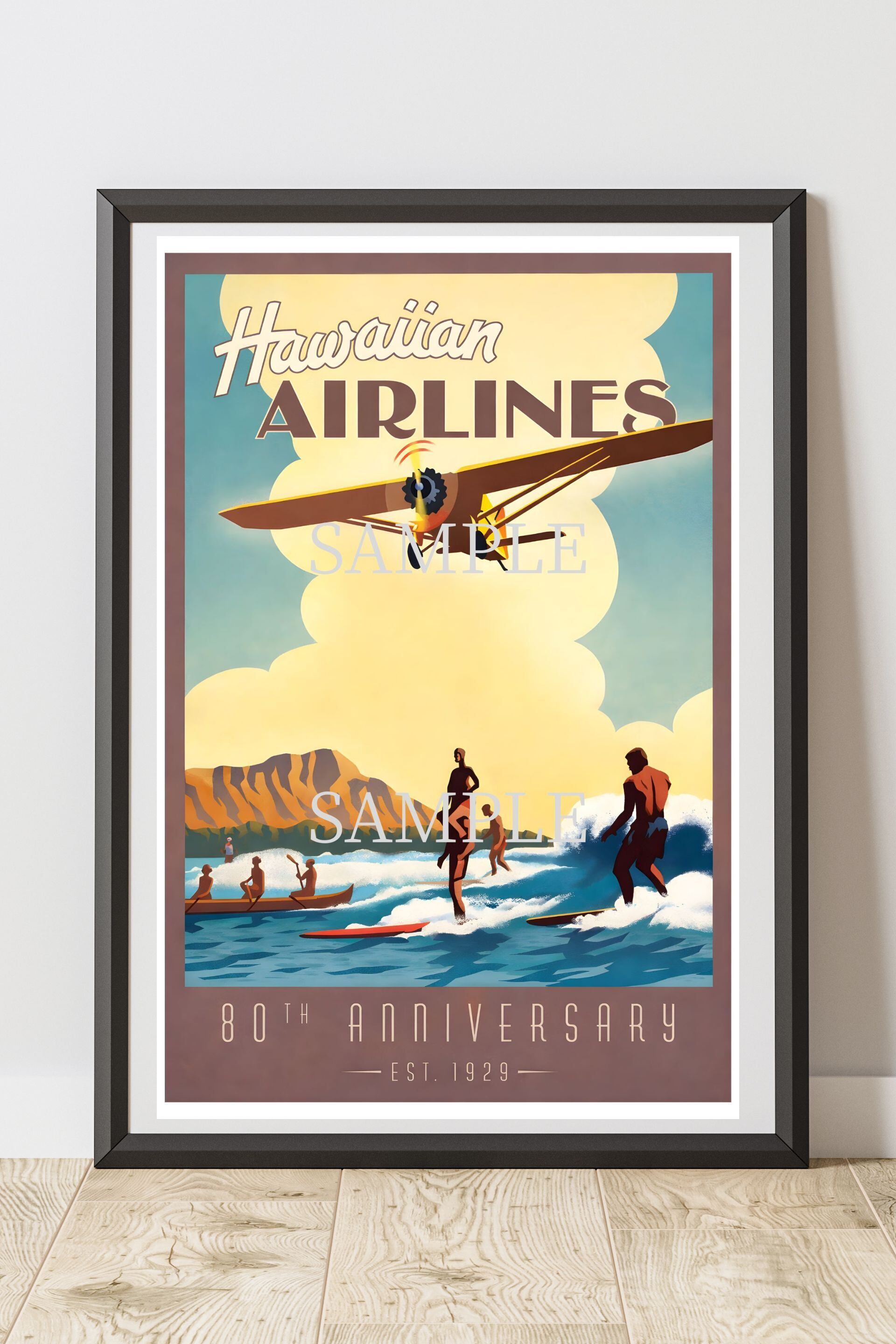 Hawaiian Airlines ポスター A2 ハワイ ヴィンテージ トラベルポスター サーフィン ビーチアート レプリカ