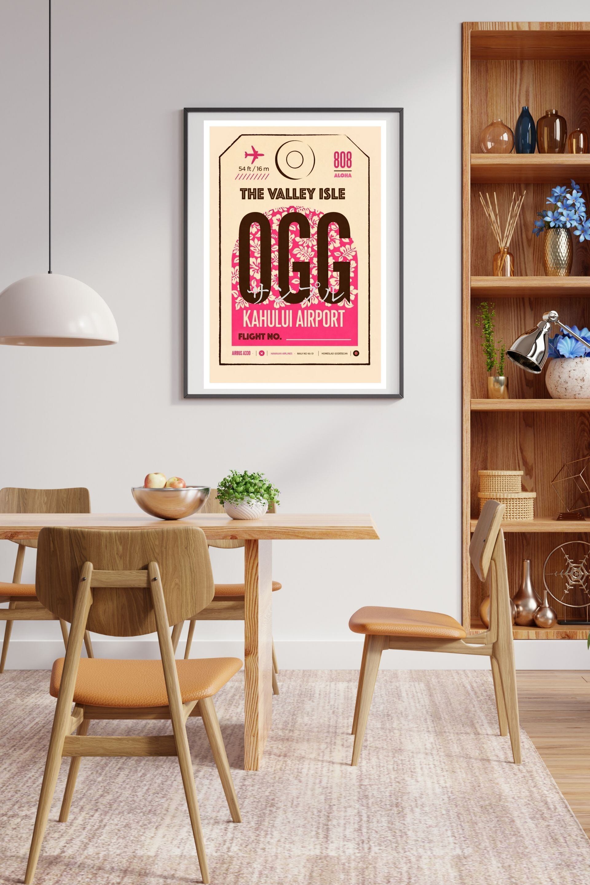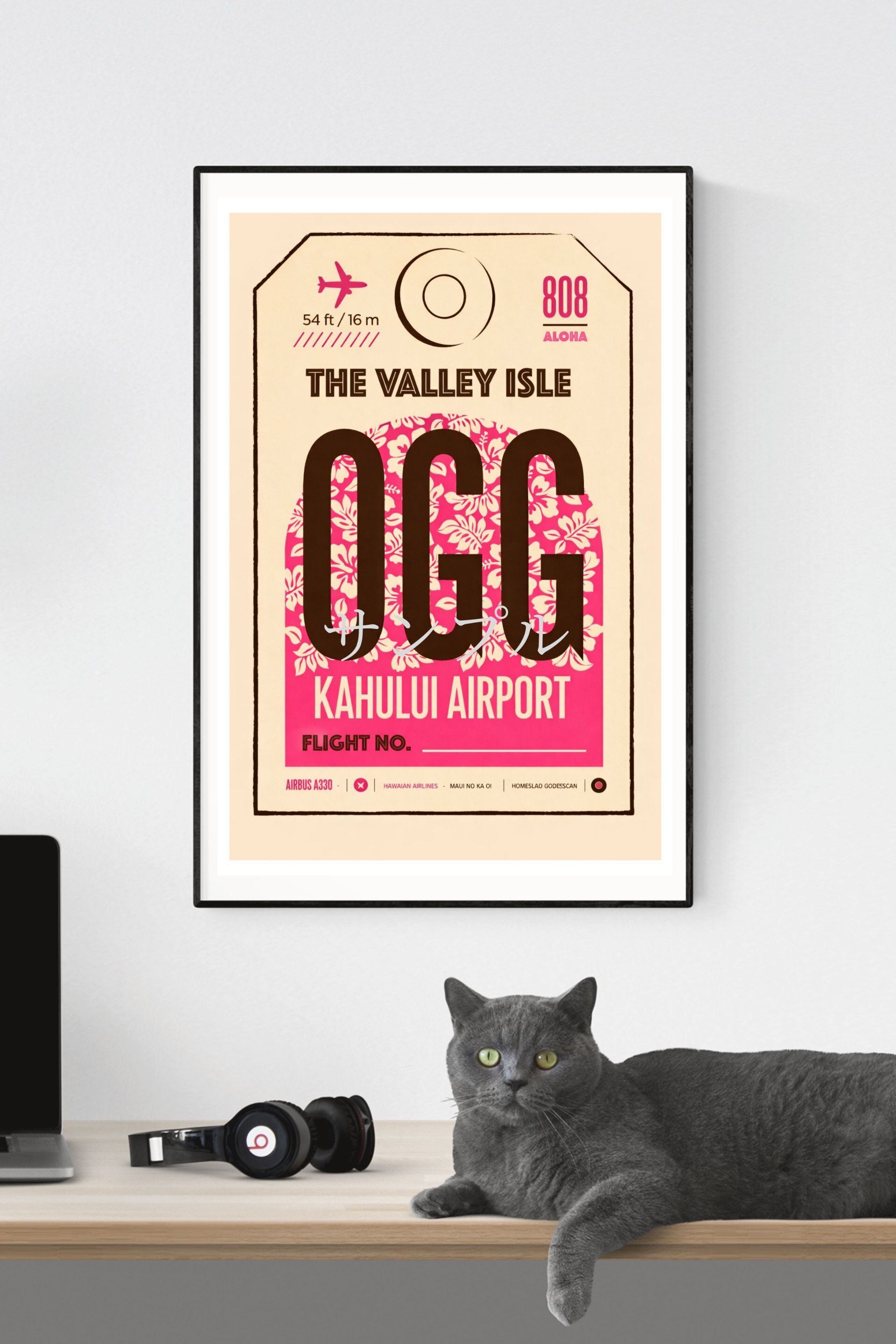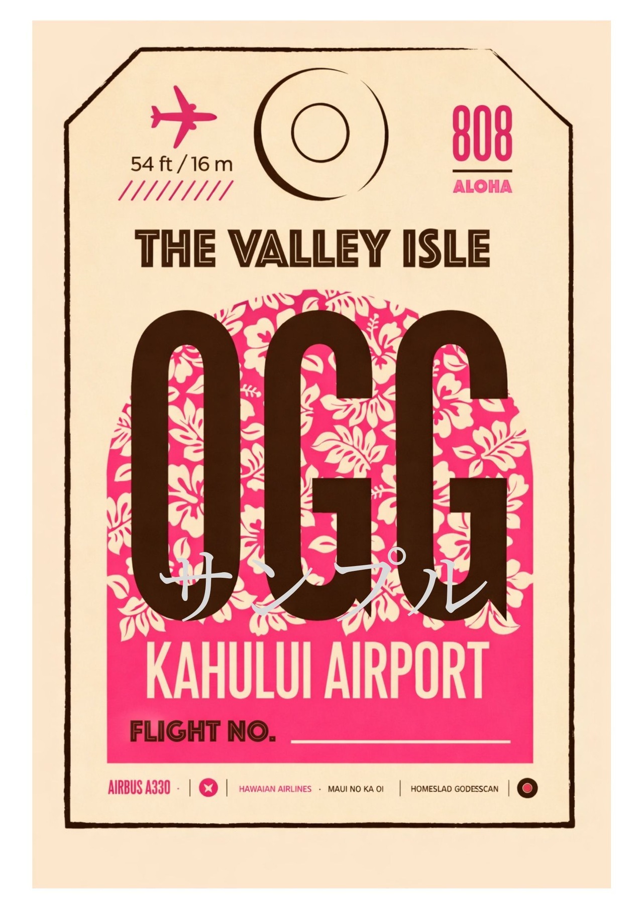 OGG Kahului Airport ポスター A2 マウイ空港 ハワイ航空タグ ヴィンテージトラベルアート レプリカ