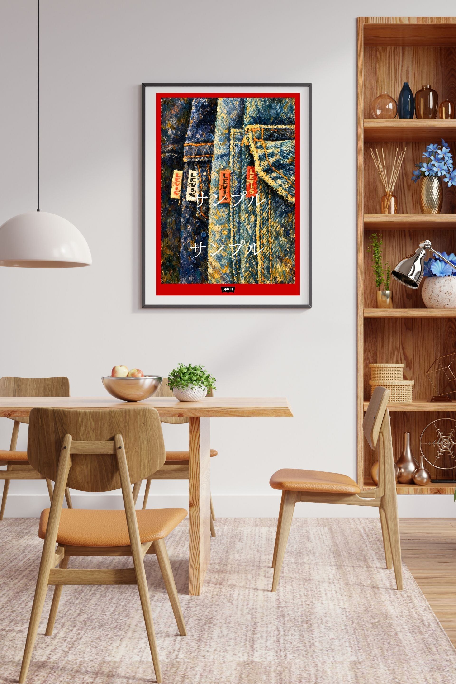 ジーンズの象徴ともいえる「Levi's」タグをモチーフにしたデニムアートポスターです。
