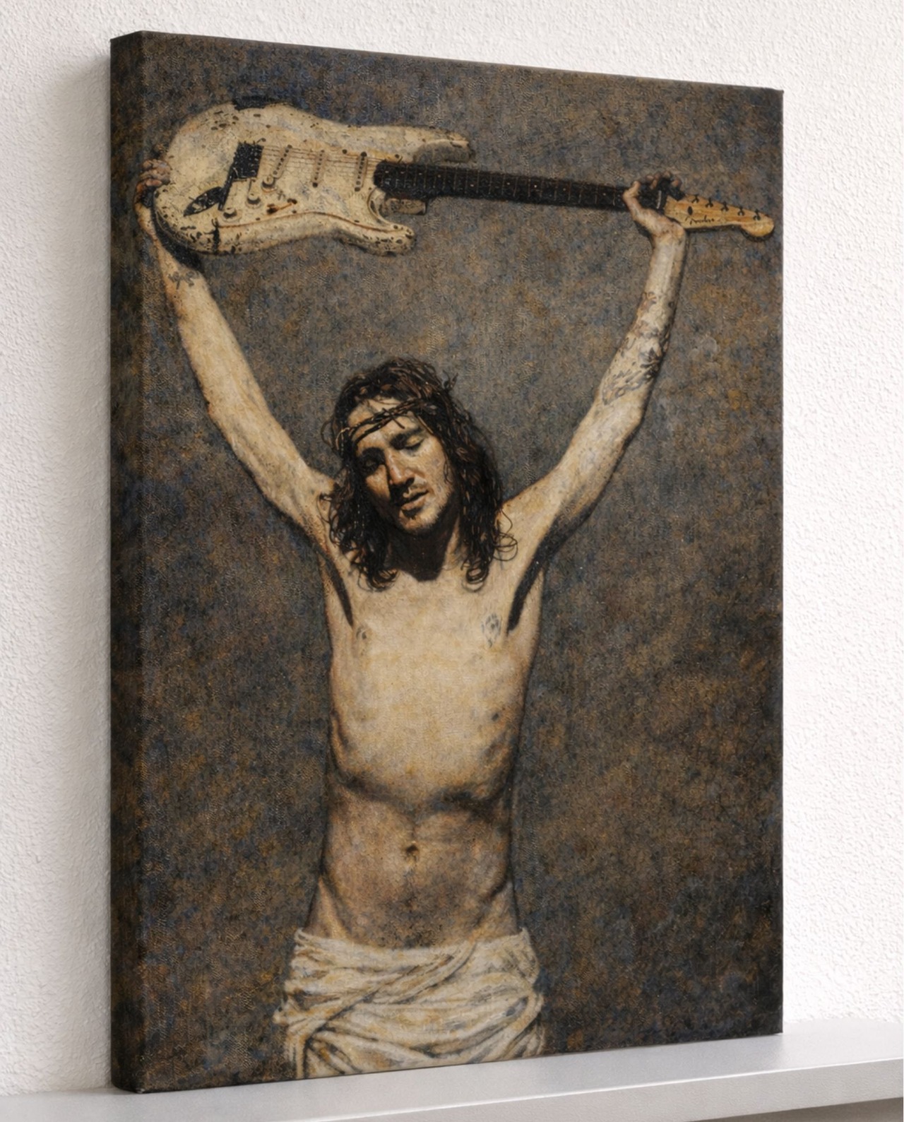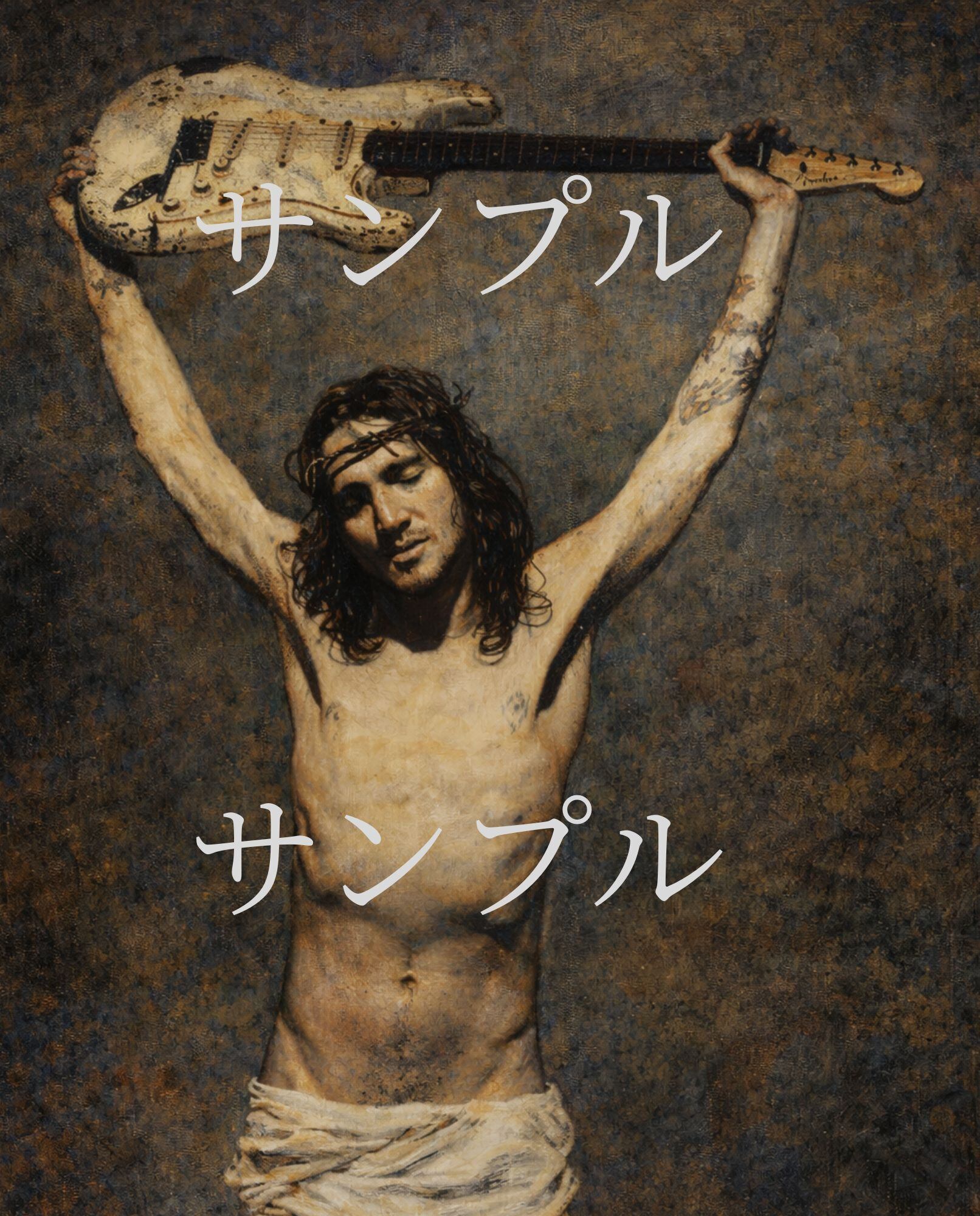 F3キャンバスプリント ジョン・フルシアンテ インスパイア ストラトキャスター ロックギターアート(油絵風)