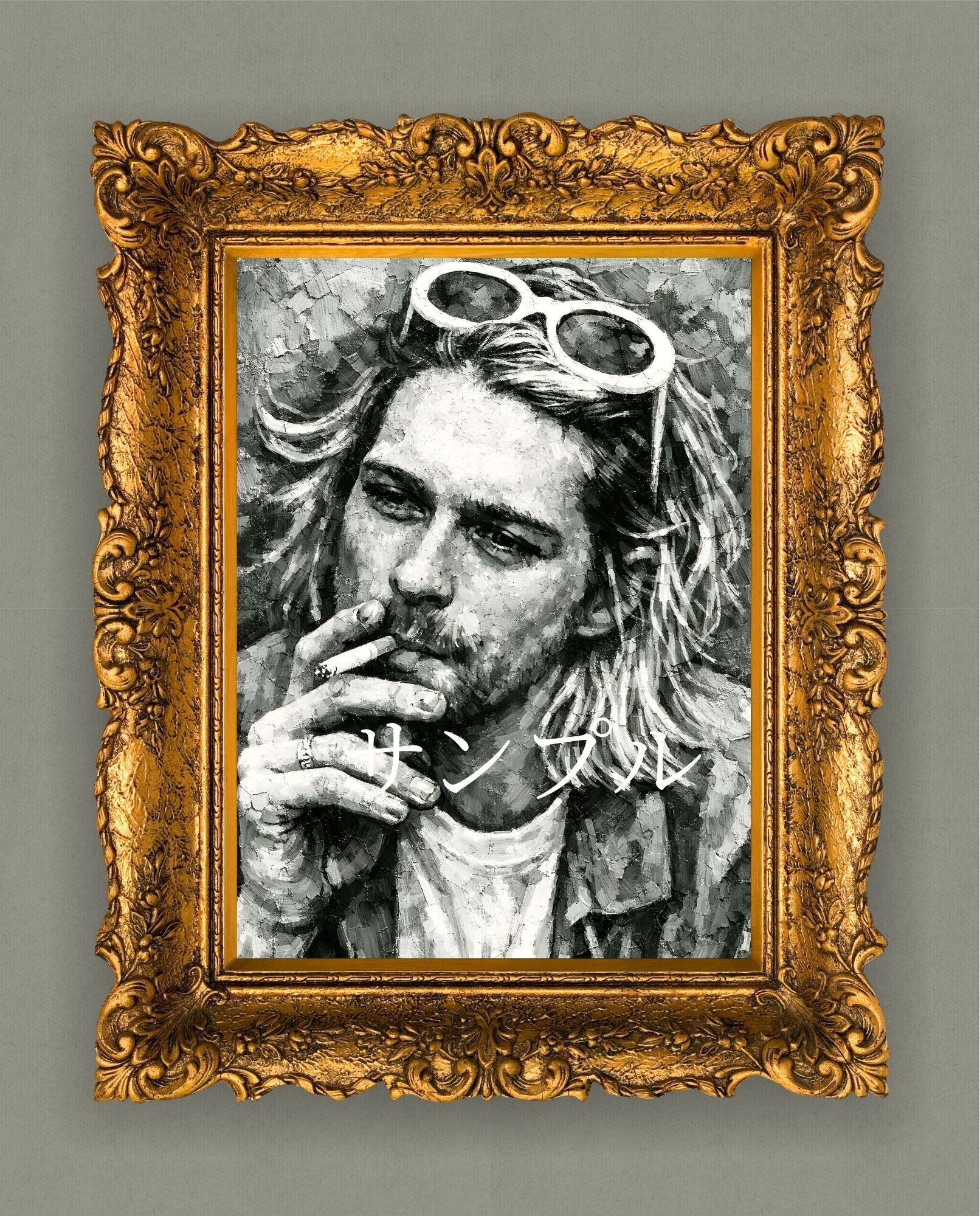 カート・コバーン アート F3キャンバスプリント ニルヴァーナ グランジ ロックポートレート(油絵風)