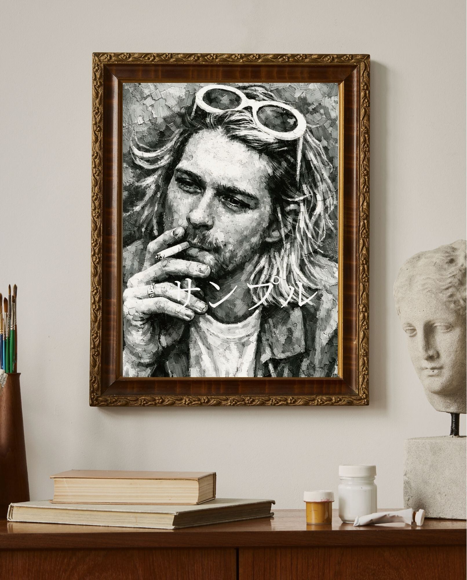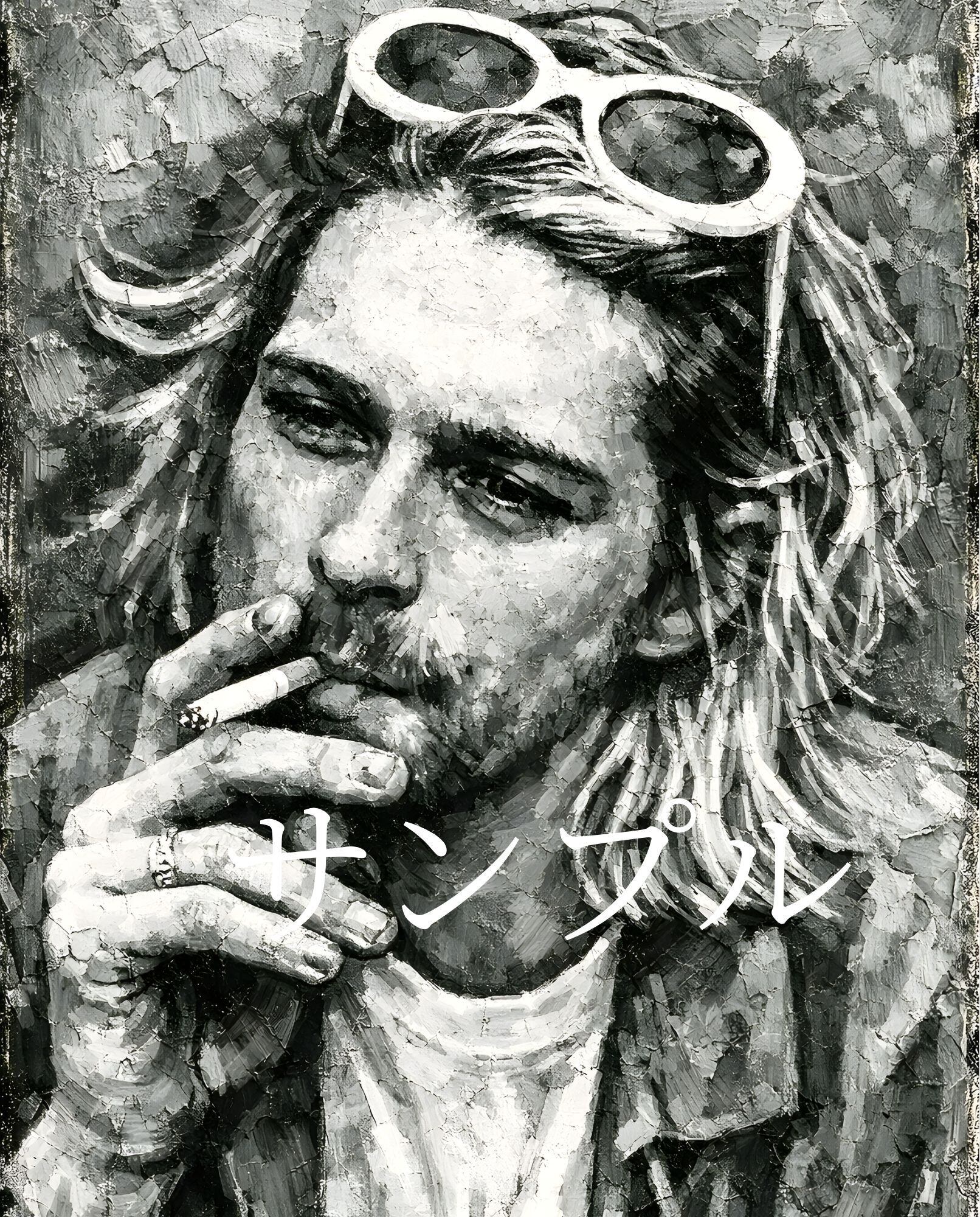 カート・コバーンをモチーフにしたグランジロックアート作品。