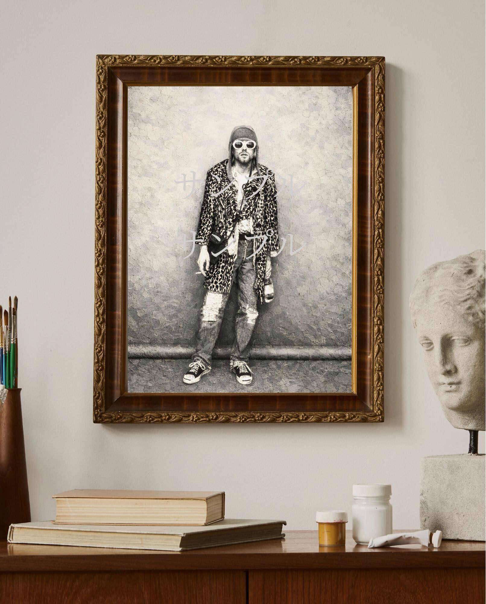 カート・コバーン アート F3キャンバスプリント ニルヴァーナ グランジ ロックポートレート(油絵風)
