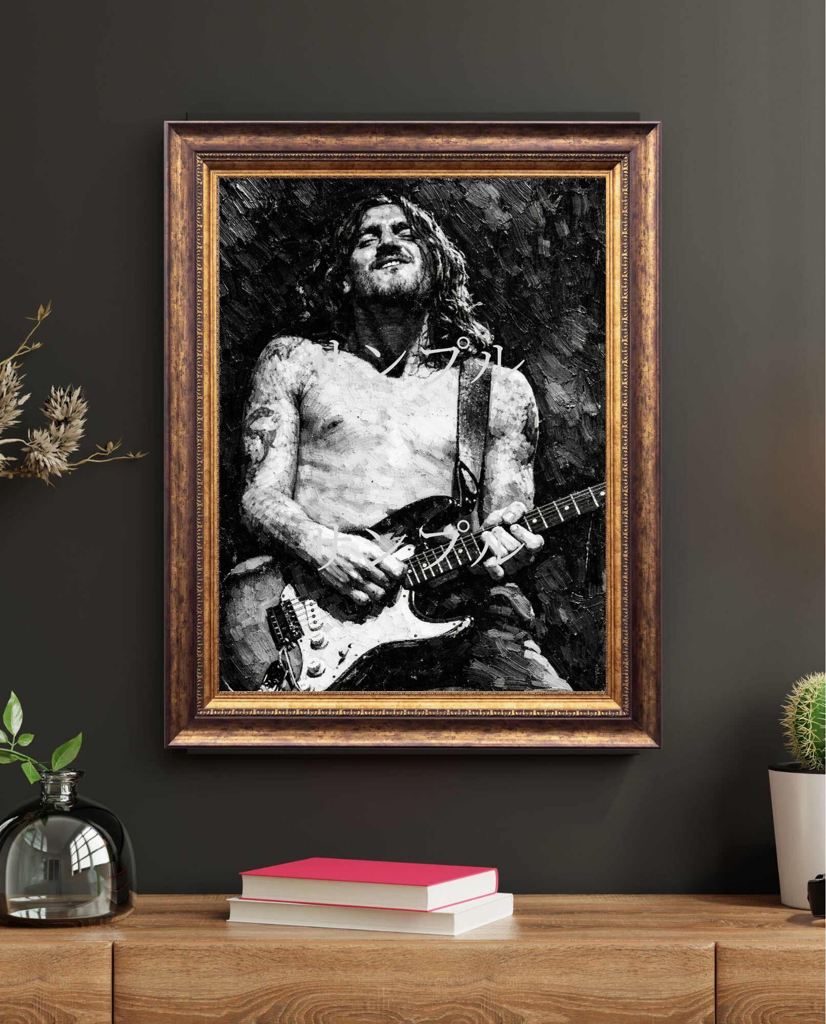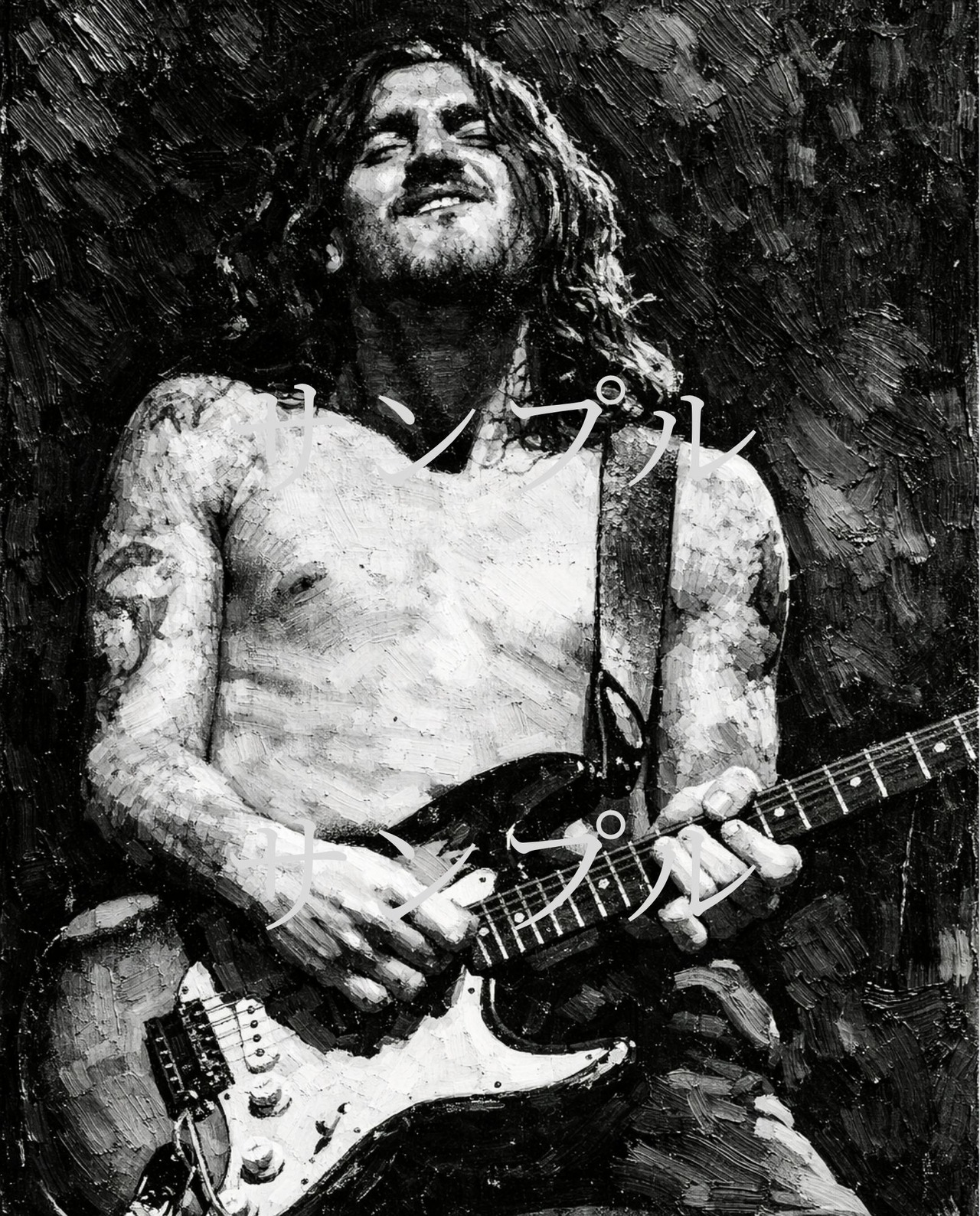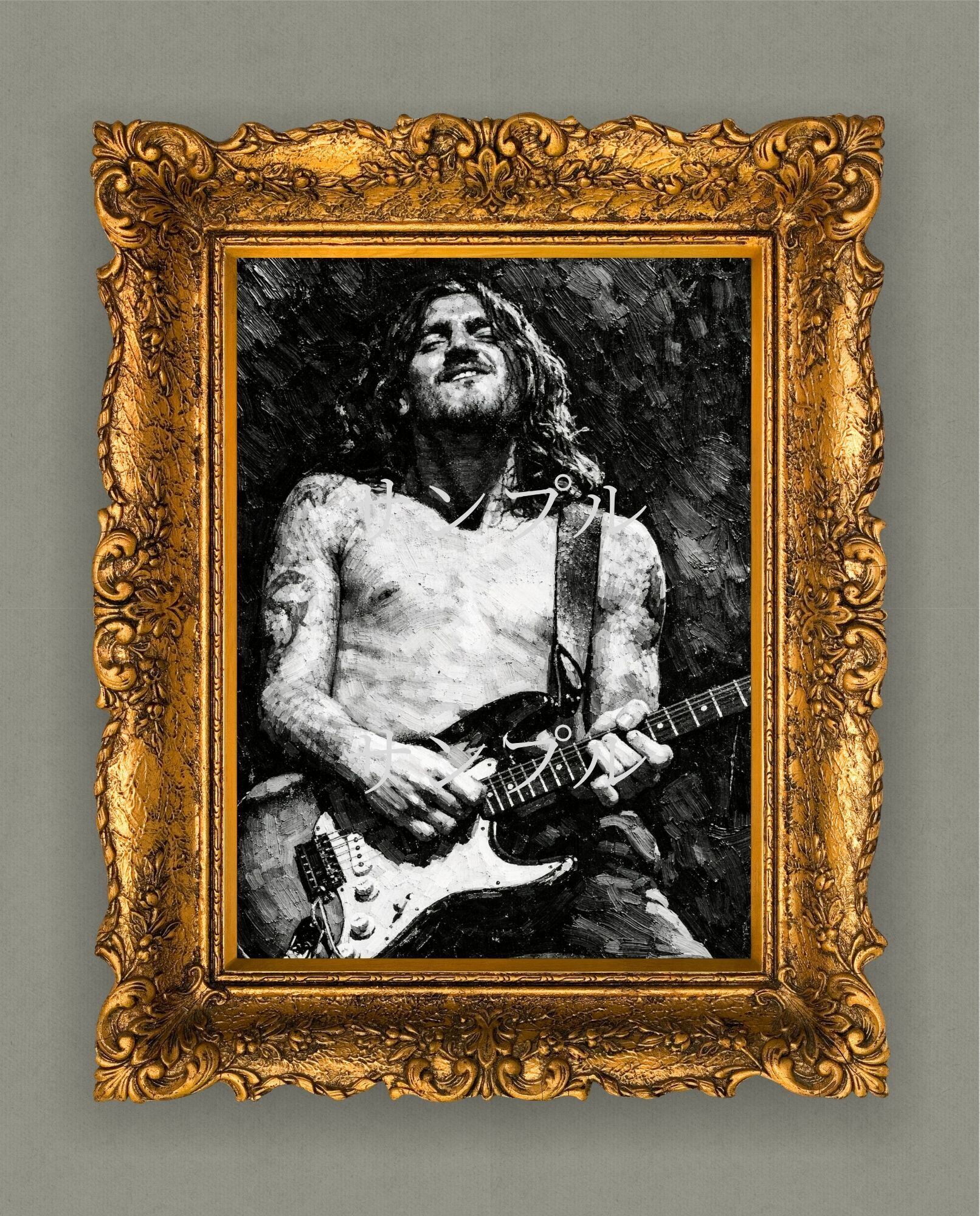 ジョンフルシアンテ キャンバスプリント F3 John Frusciante RHCP ギタリスト 油絵風 モノクロ ロックアート ヴィンテージ
