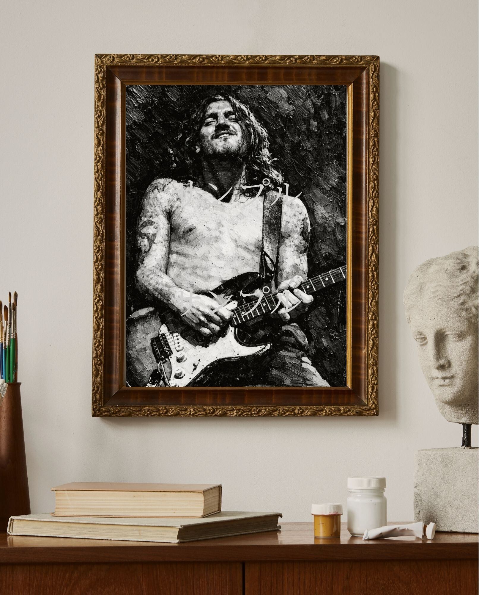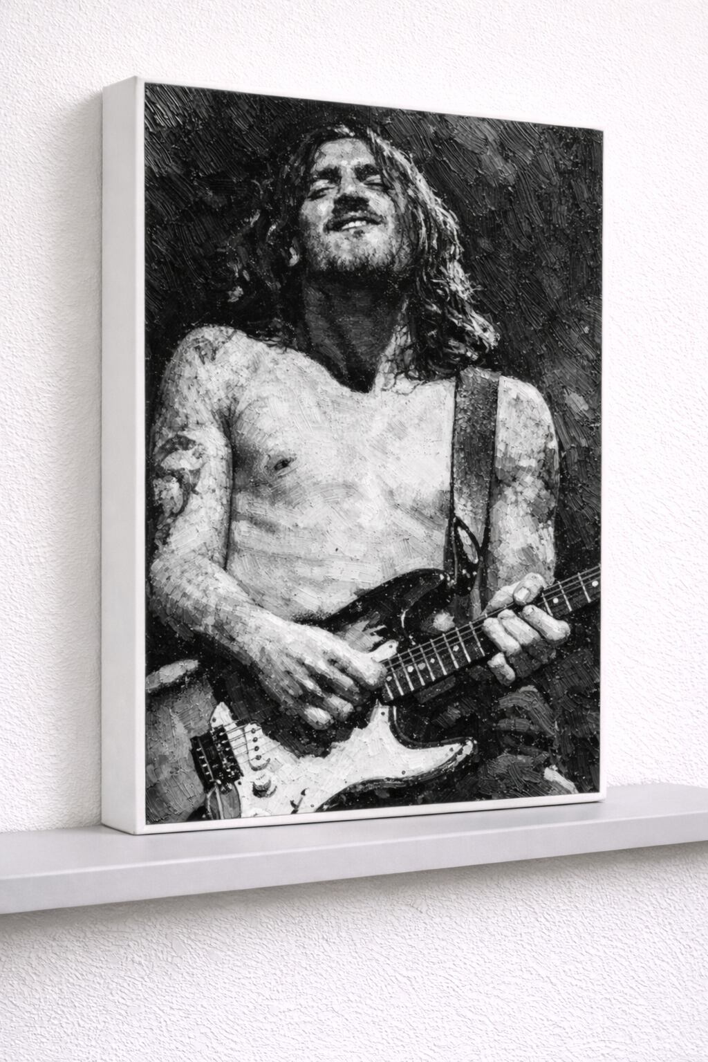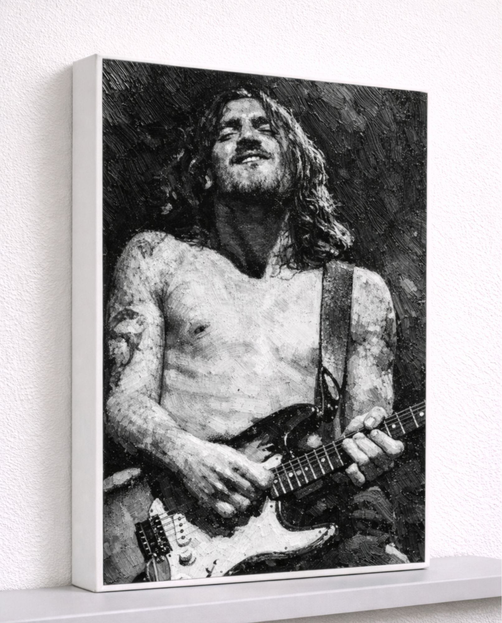 ジョンフルシアンテ キャンバスプリント F3 John Frusciante RHCP ギタリスト 油絵風 モノクロ ロックアート ヴィンテージ