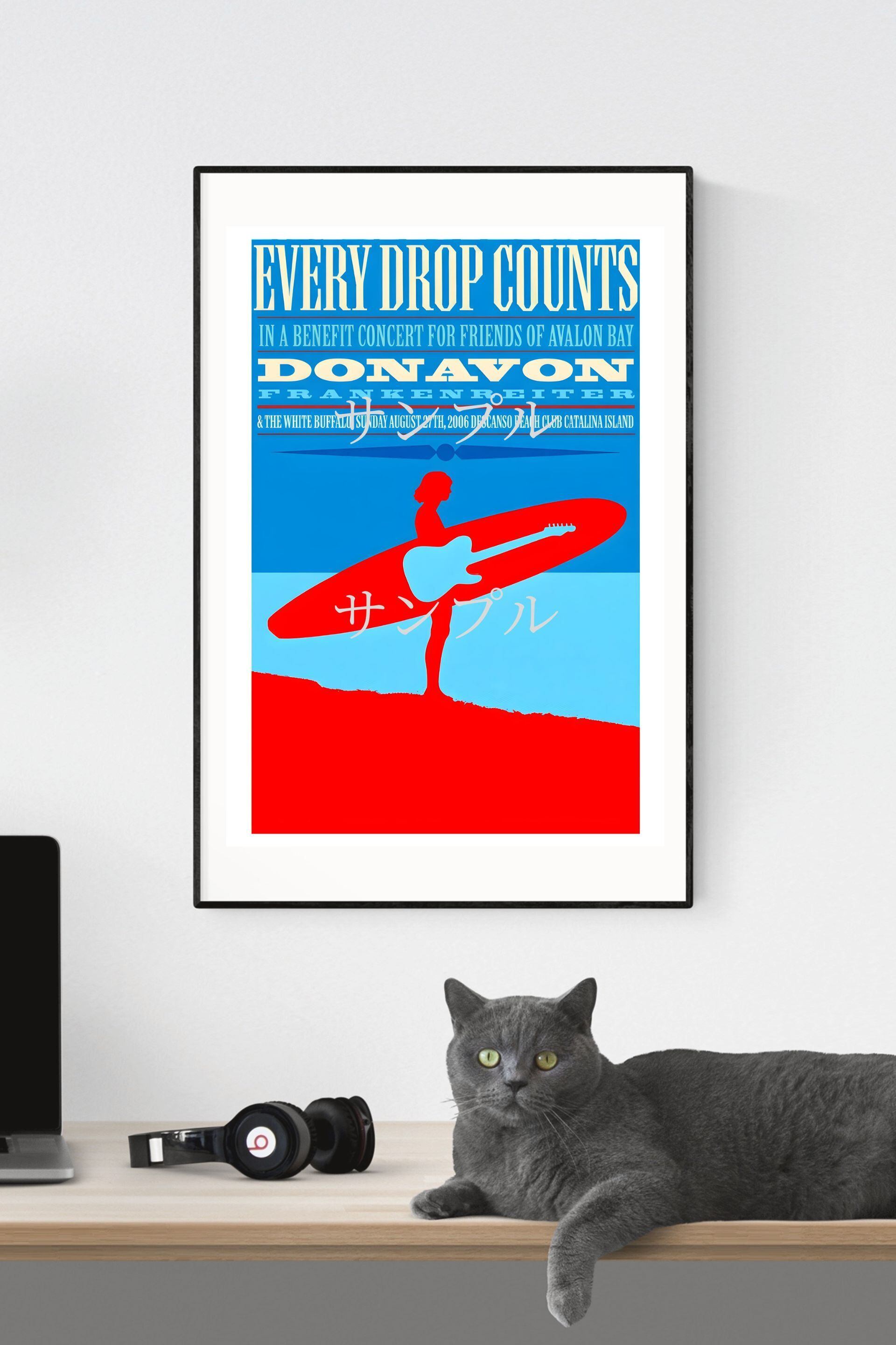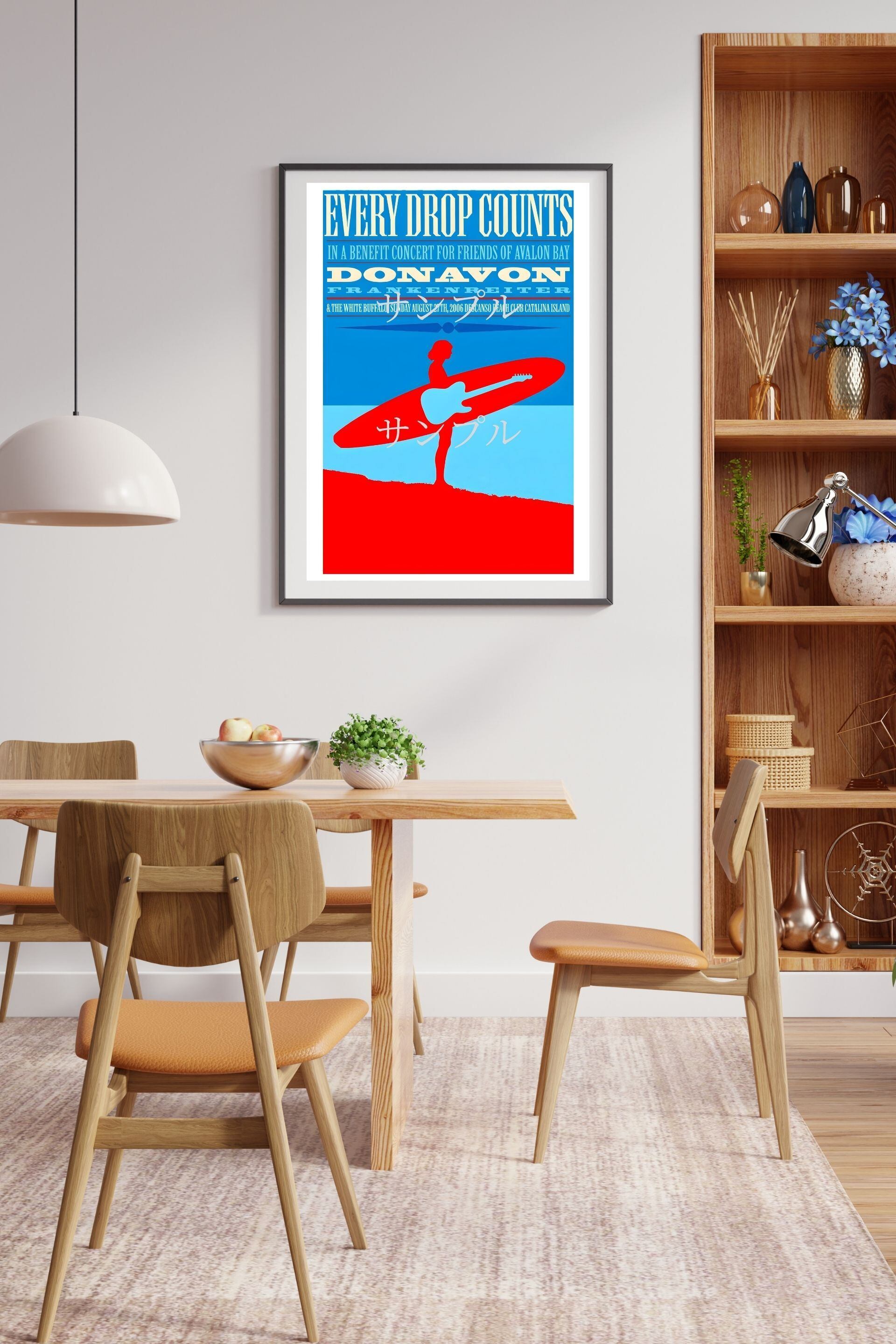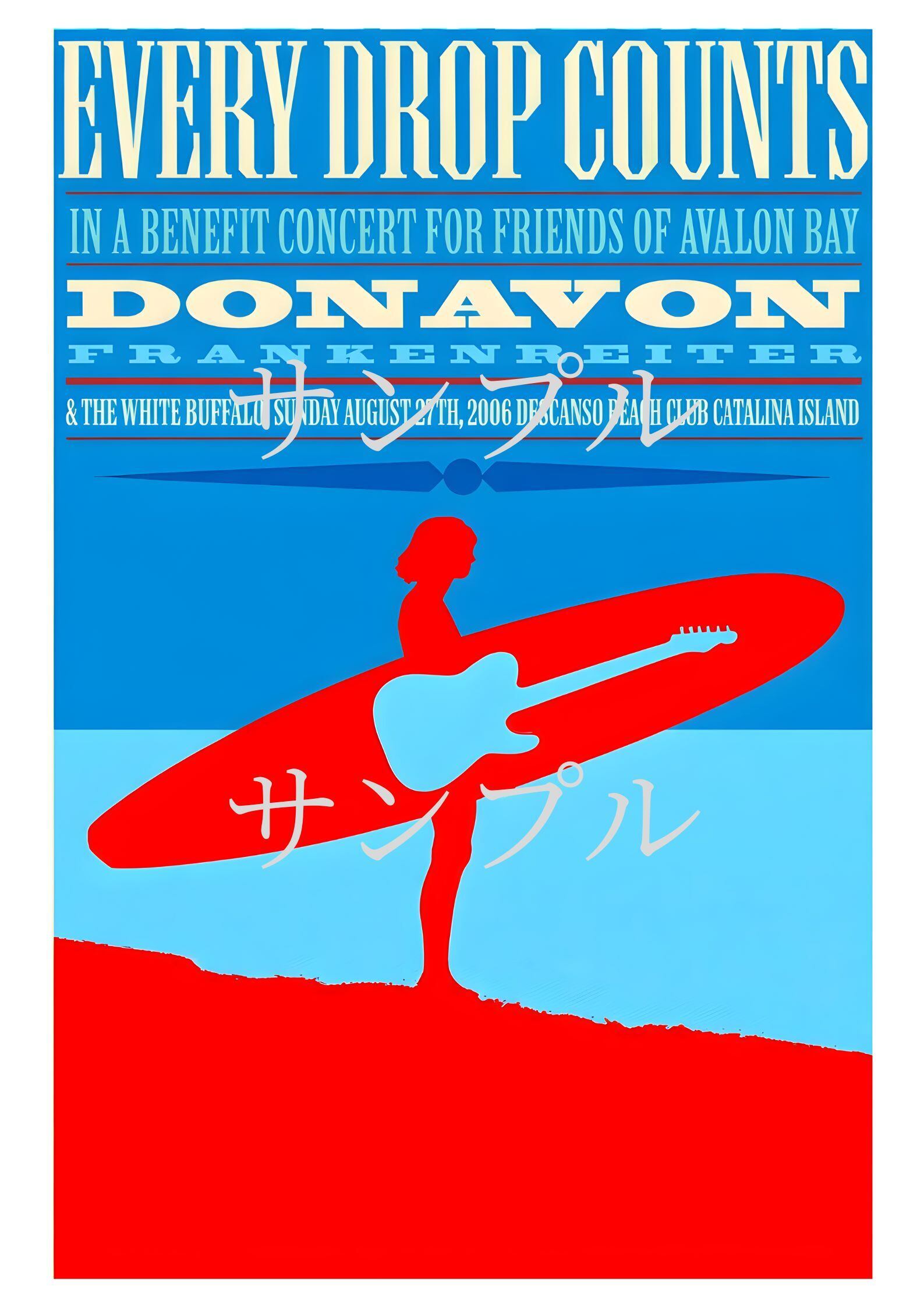 サーフカルチャーと音楽が融合した、ドノヴァン・フランケンレイターの世界観を表現したヴィンテージ風アートポスター。
