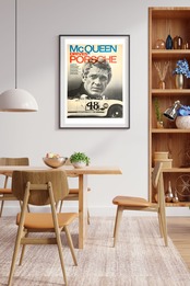 映画とモータースポーツの伝説、スティーブ・マックイーンとポルシェ908をテーマにしたヴィンテージ風レプリカポスター。
