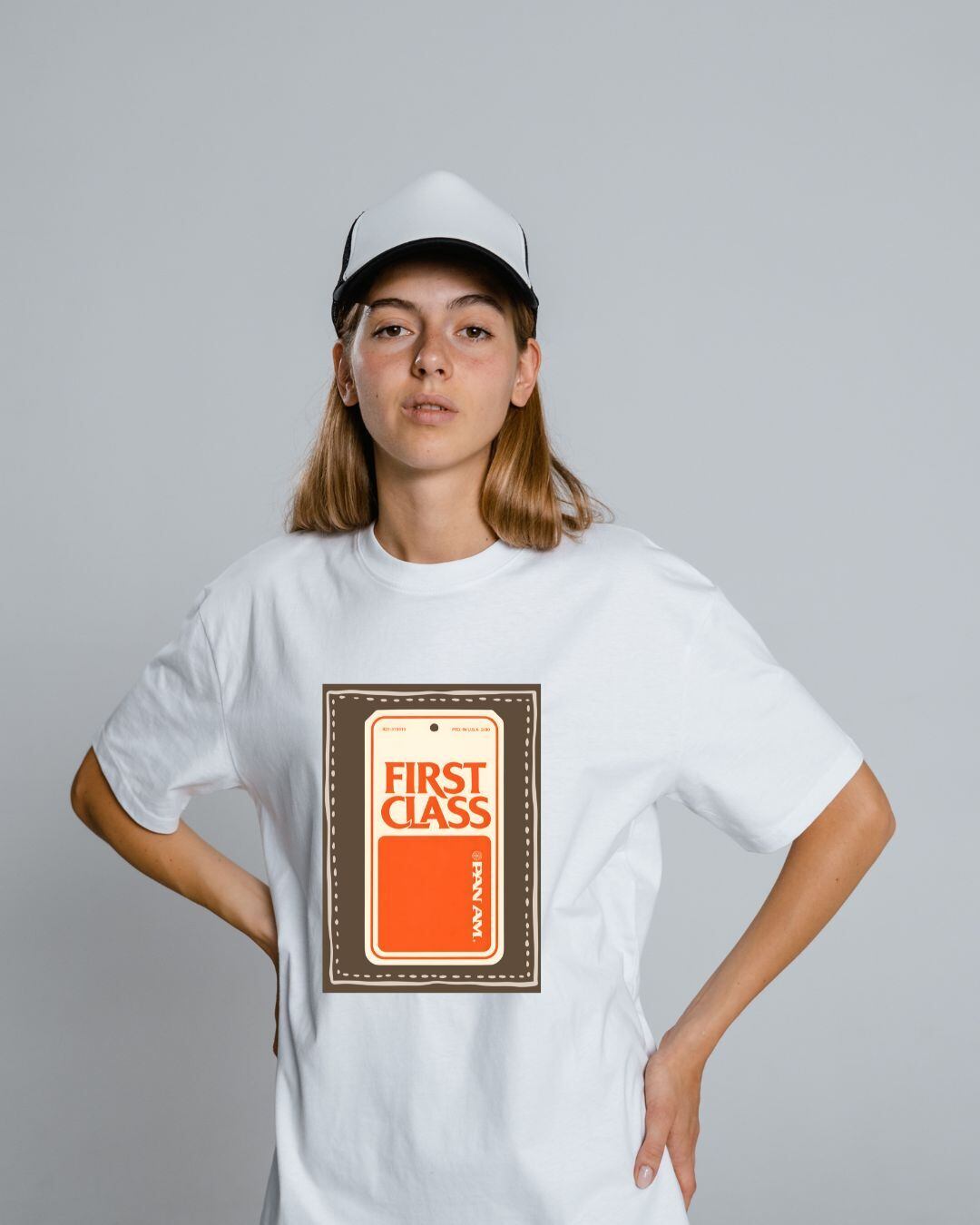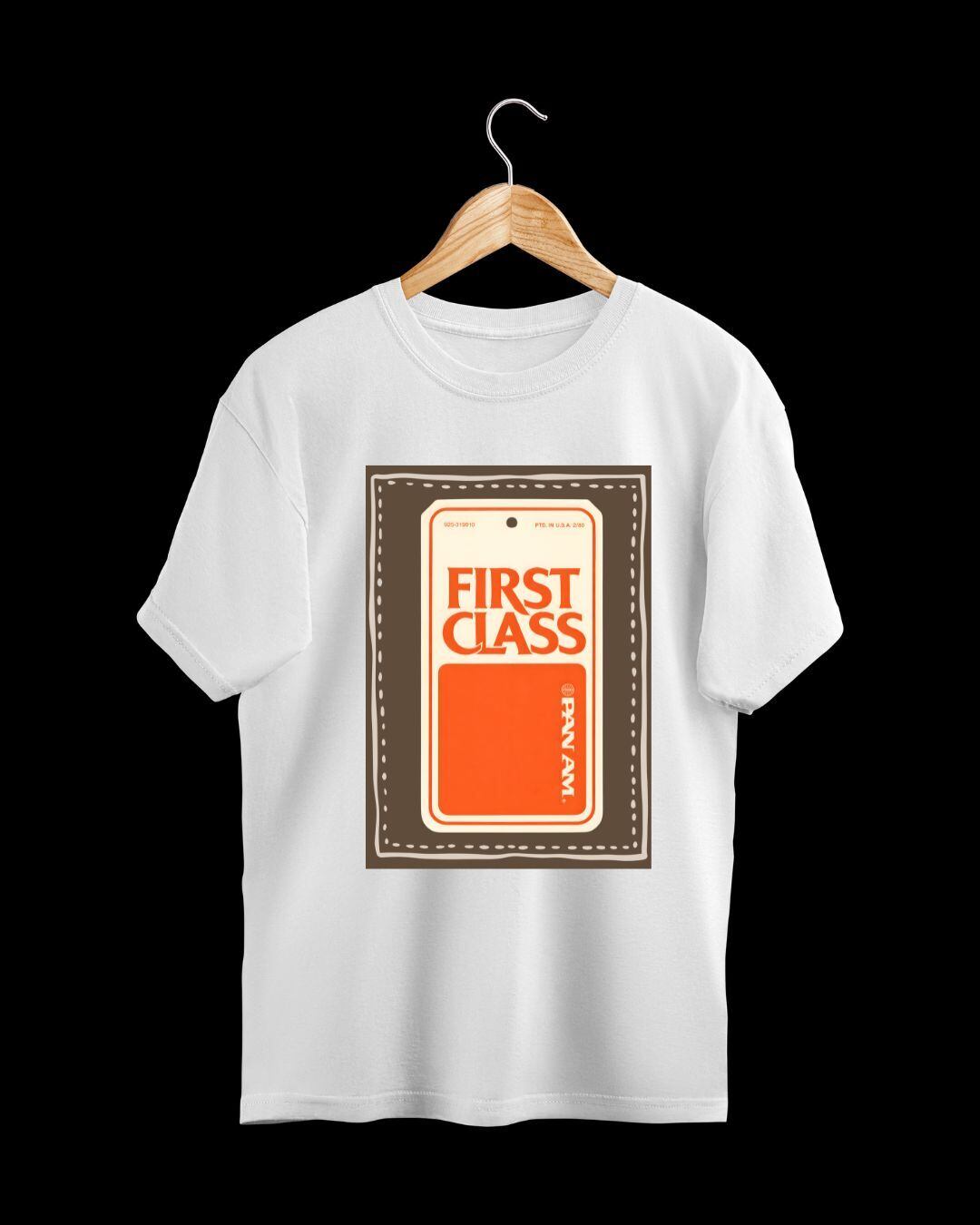 FIRST CLASS Tシャツ PAN AM風 タグデザイン バゲージタグ Printstar 00085-CVT 5.6oz ヘビーウェイト 半袖 ヴィンテージ アートT