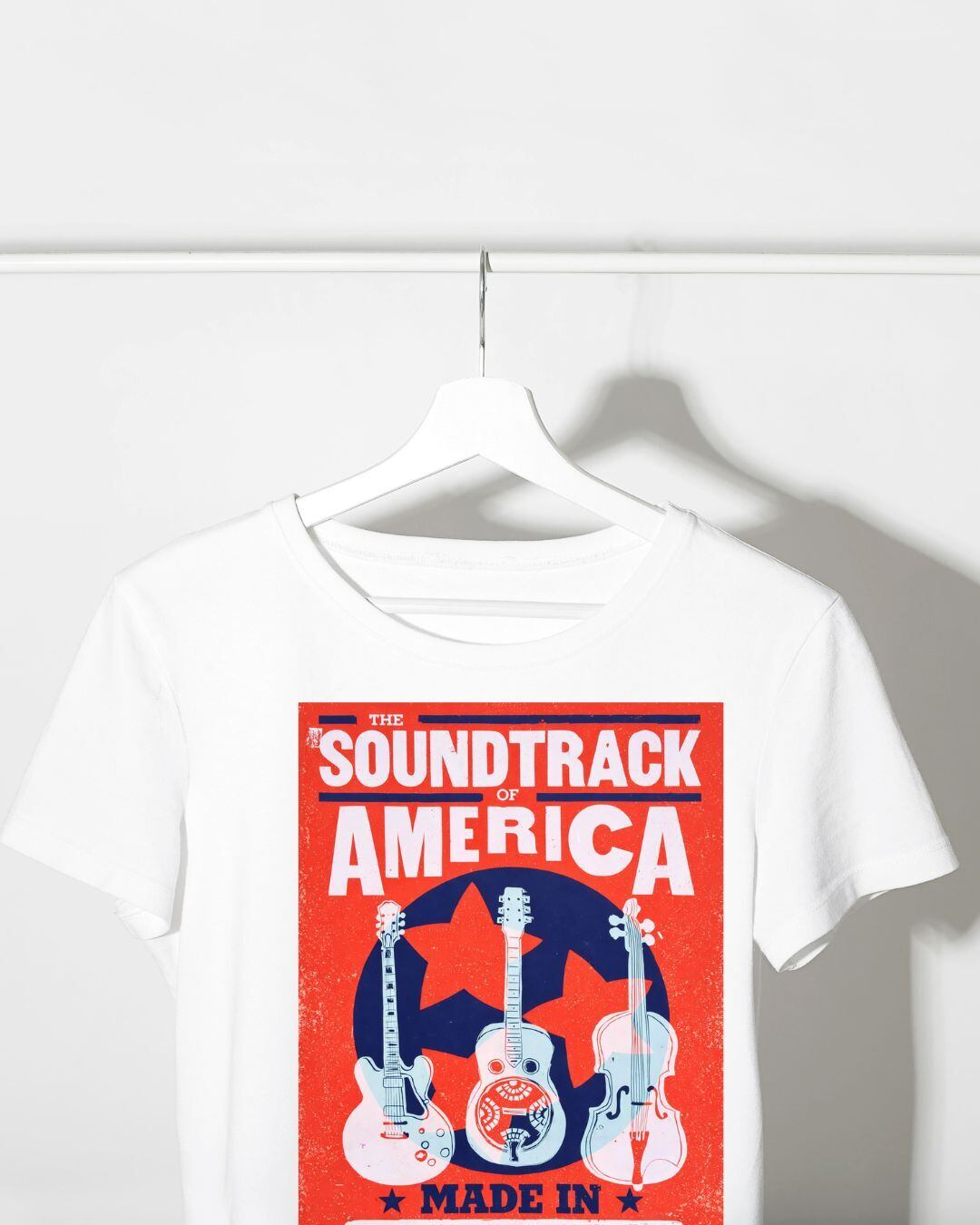 「THE SOUNDTRACK OF AMERICA」のメッセージと、レトロな配色・質感が特徴。