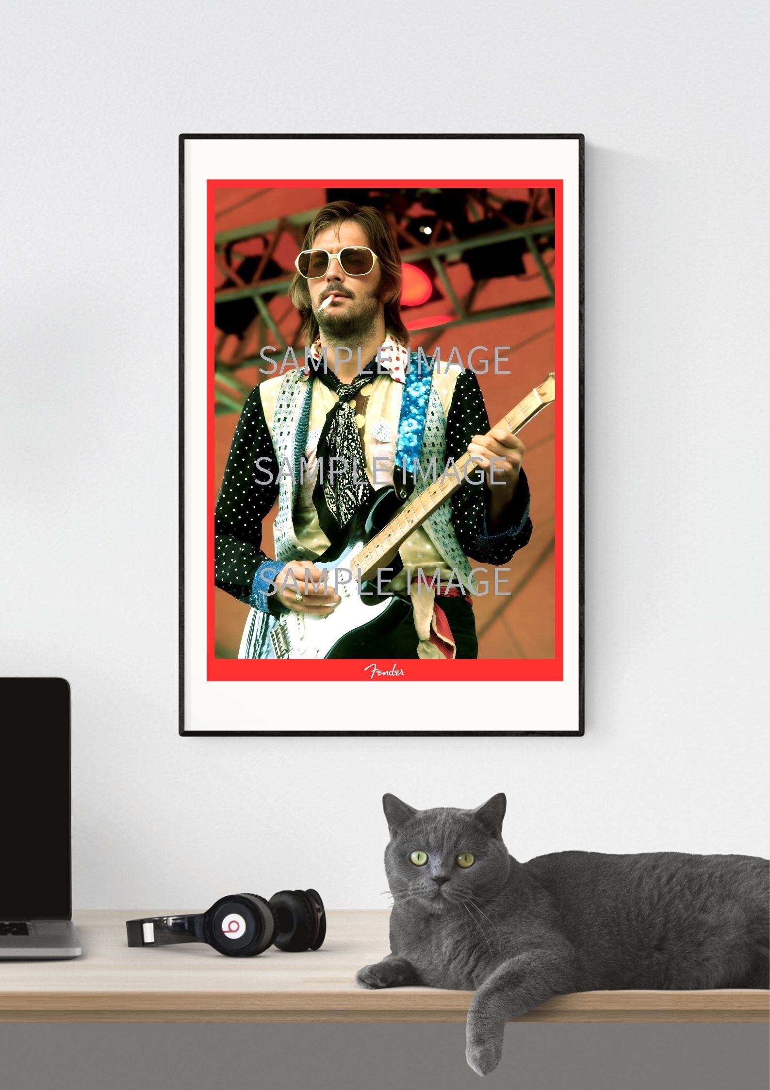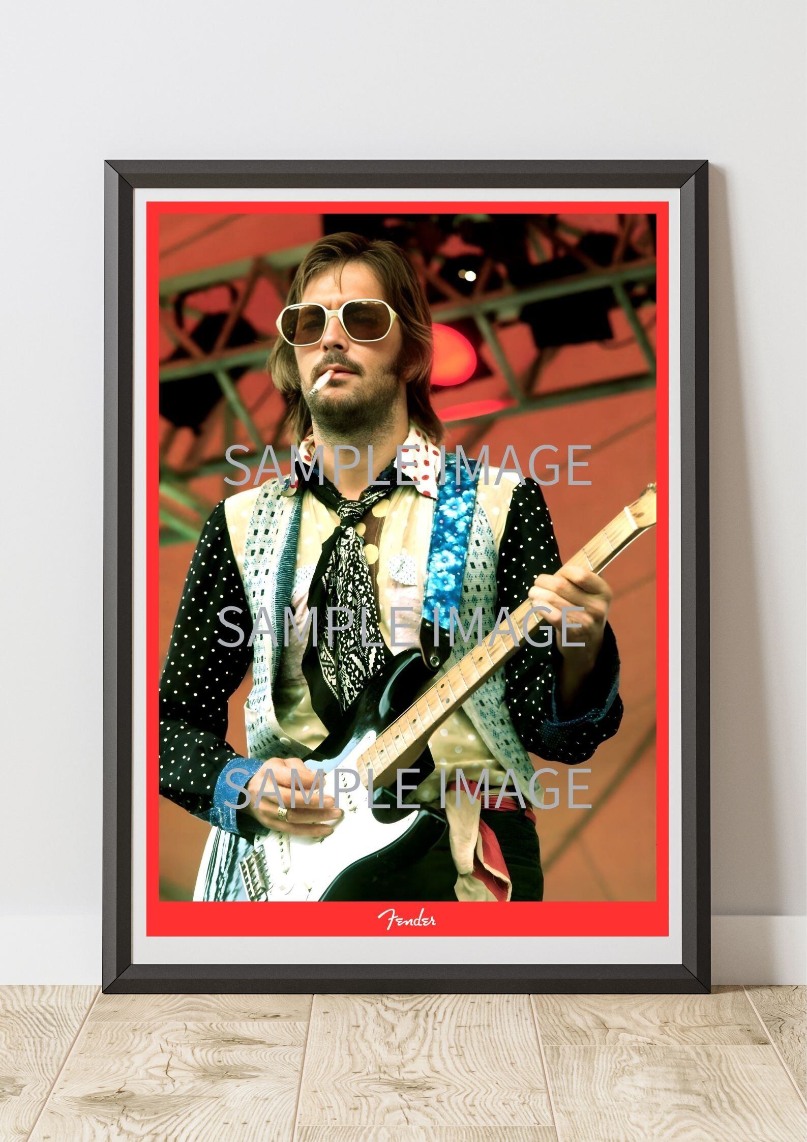 Eric Clapton, エリッククラプトン, Fender, Stratocaster, ストラトキャスター, ギターポスター, ロックポスター, ライブフォト, ヴィンテージロック, 音楽アート, Fender Poster, レプリカポスター