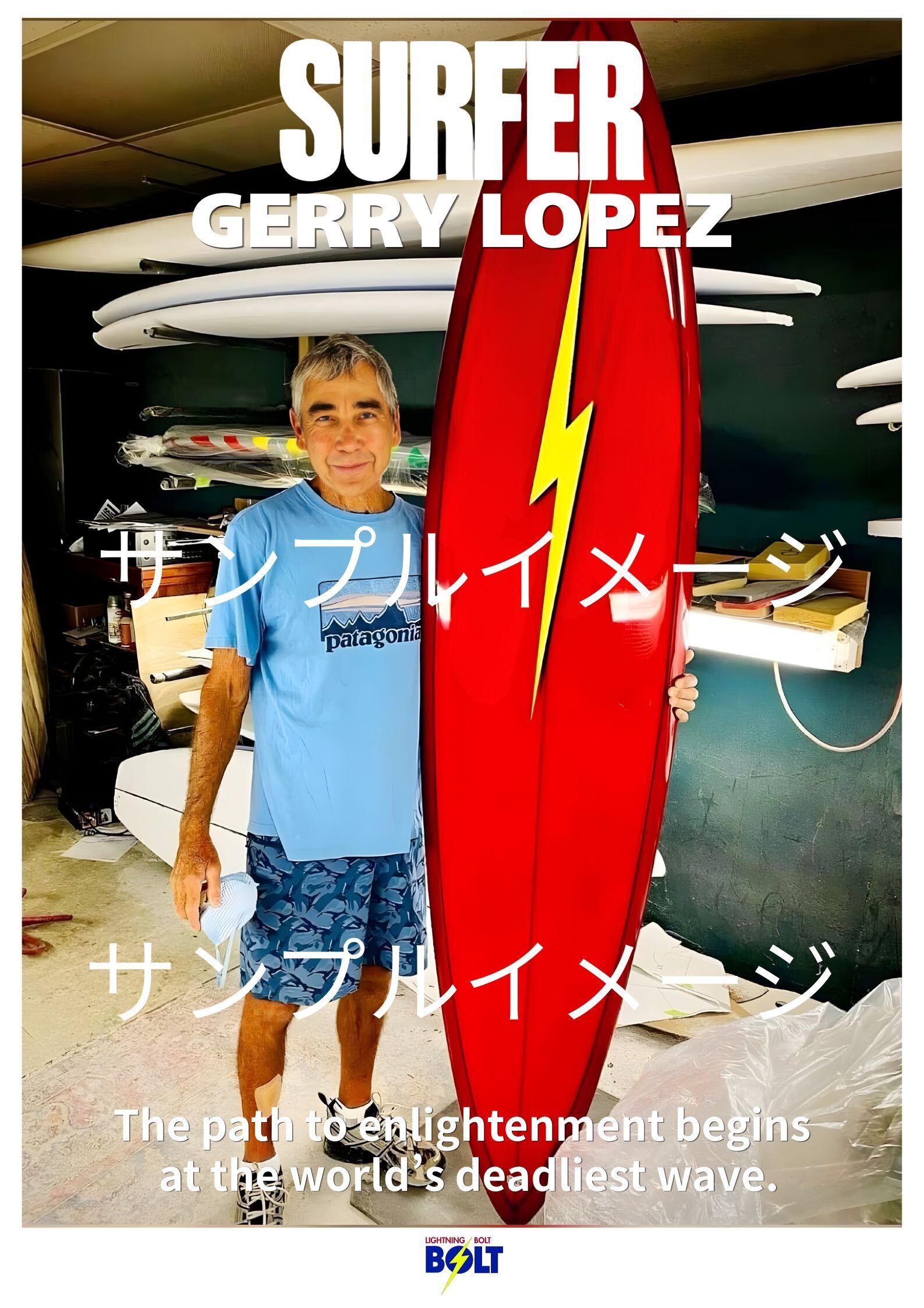A2 Gerry Lopez レプリカポスター Lightning Bolt サーフボード シェイプルーム ポートレート サーフアート ヴィンテージ サーフィンポスター