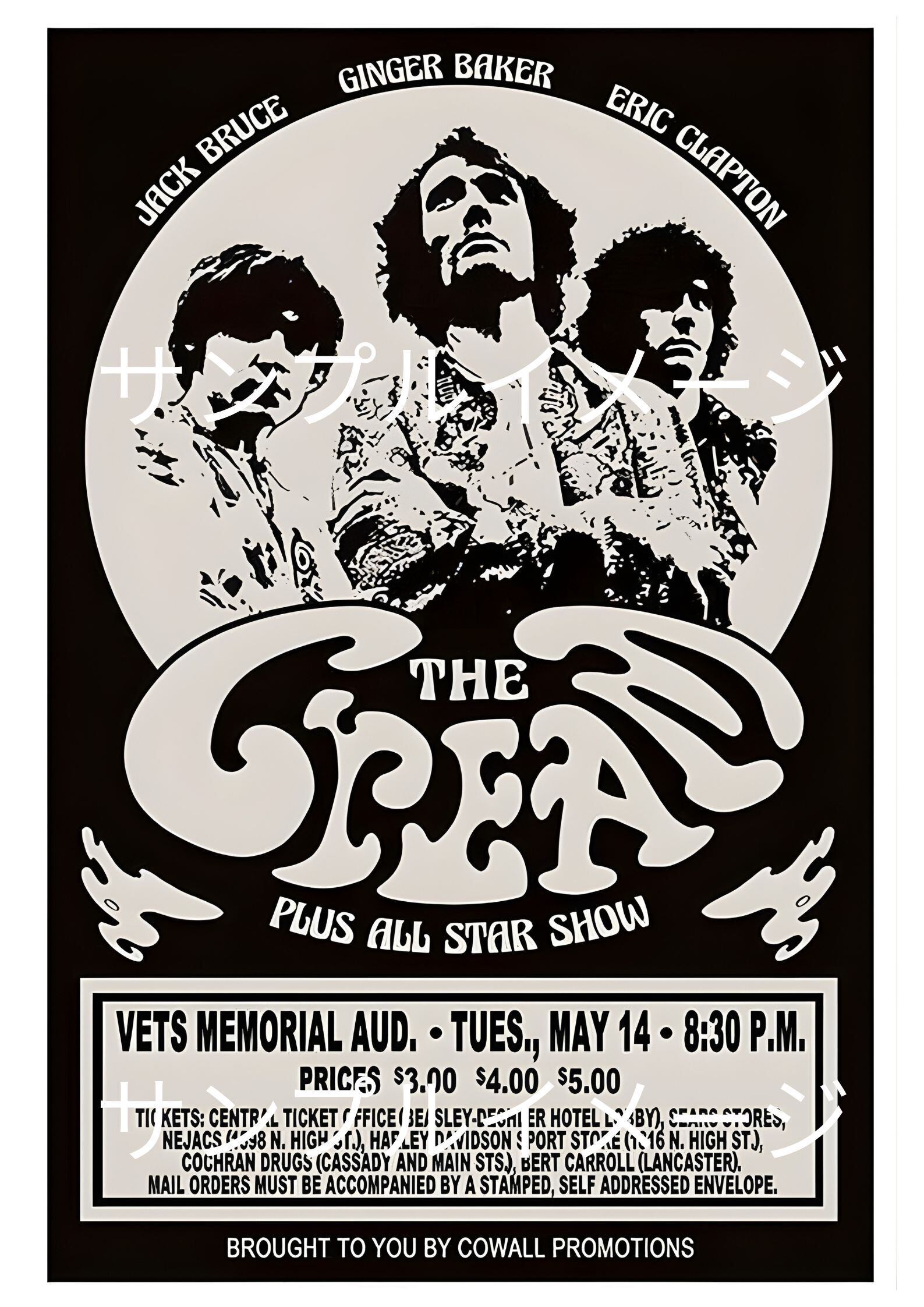 Cream, Eric Clapton, Jack Bruce, Ginger Baker, クリーム, エリッククラプトン, ヴィンテージポスター, ライブポスター, ロックポスター, ミュージックポスター, サイケデリック, 60年代ロック, レプリカポスター