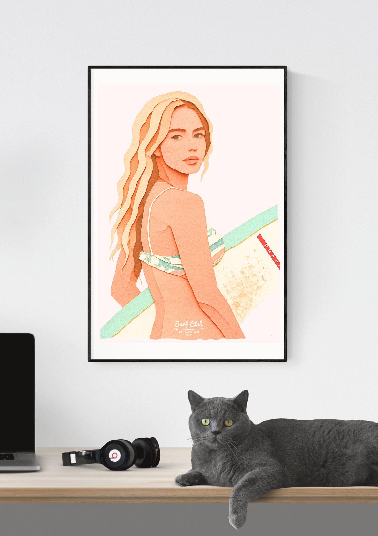 #サーフガール #PRADA風 #切り絵アート #ハワイポスター #サーフアート #ヴィンテージポスター #インテリアアート #壁掛けアート #A2ポスター #西海岸インテリア #サーフカルチャー #ファッションアート