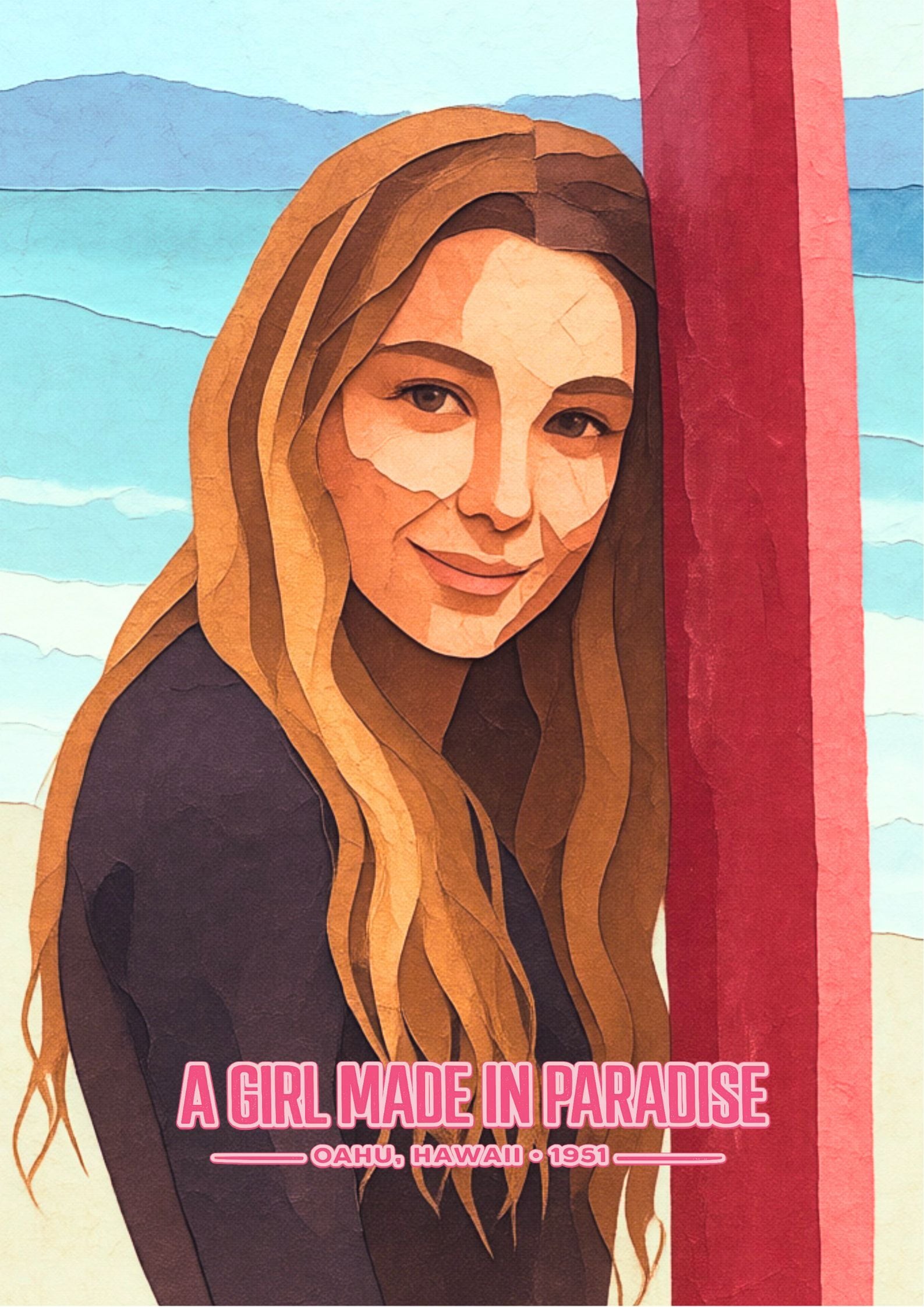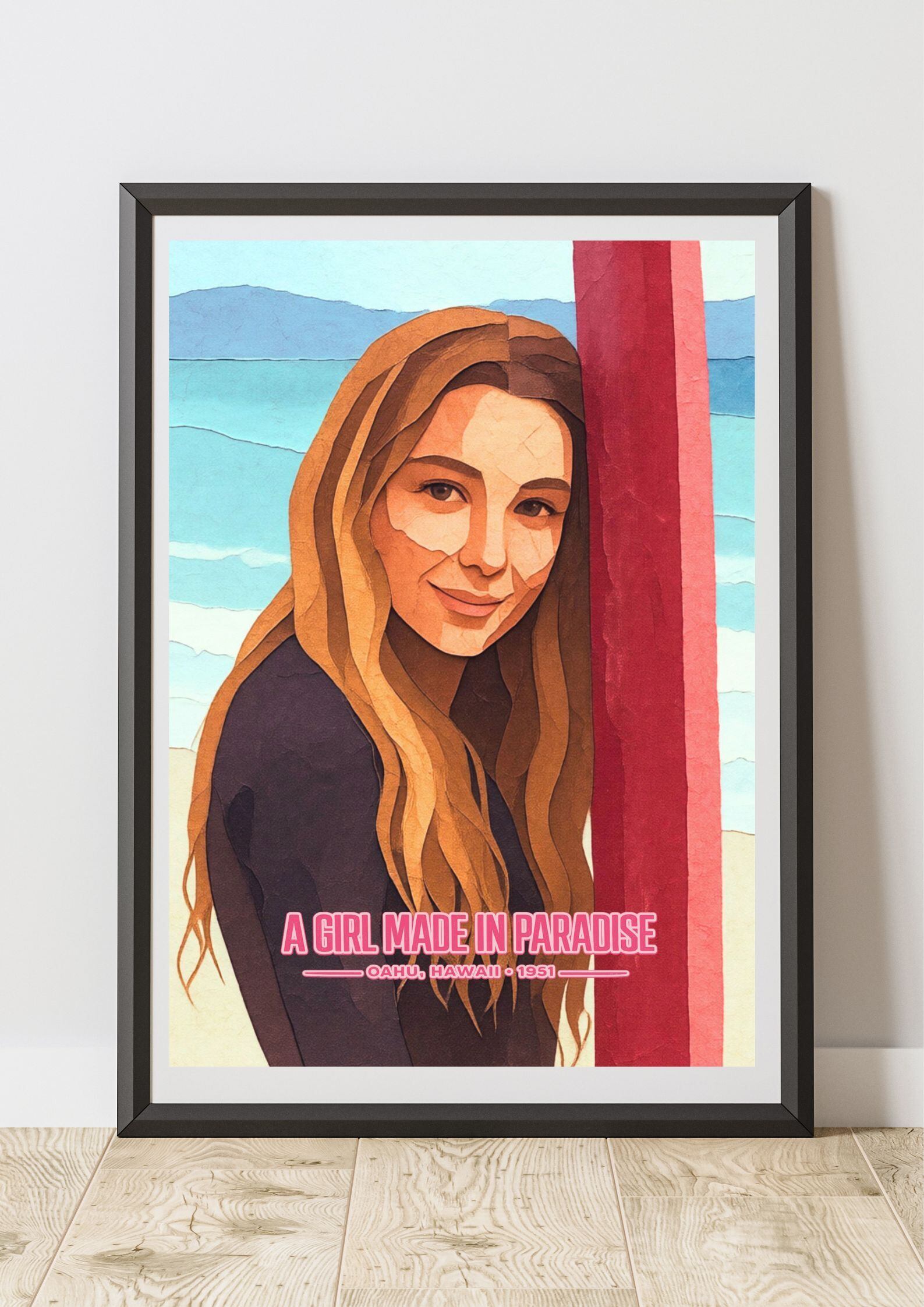 #サーフガール #ハワイポスター #オアフ #SURFART #ヴィンテージポスター #インテリアアート #壁掛けアート #A2ポスター #西海岸インテリア #サーフカルチャー #アートポスター #ハワイインテリア
