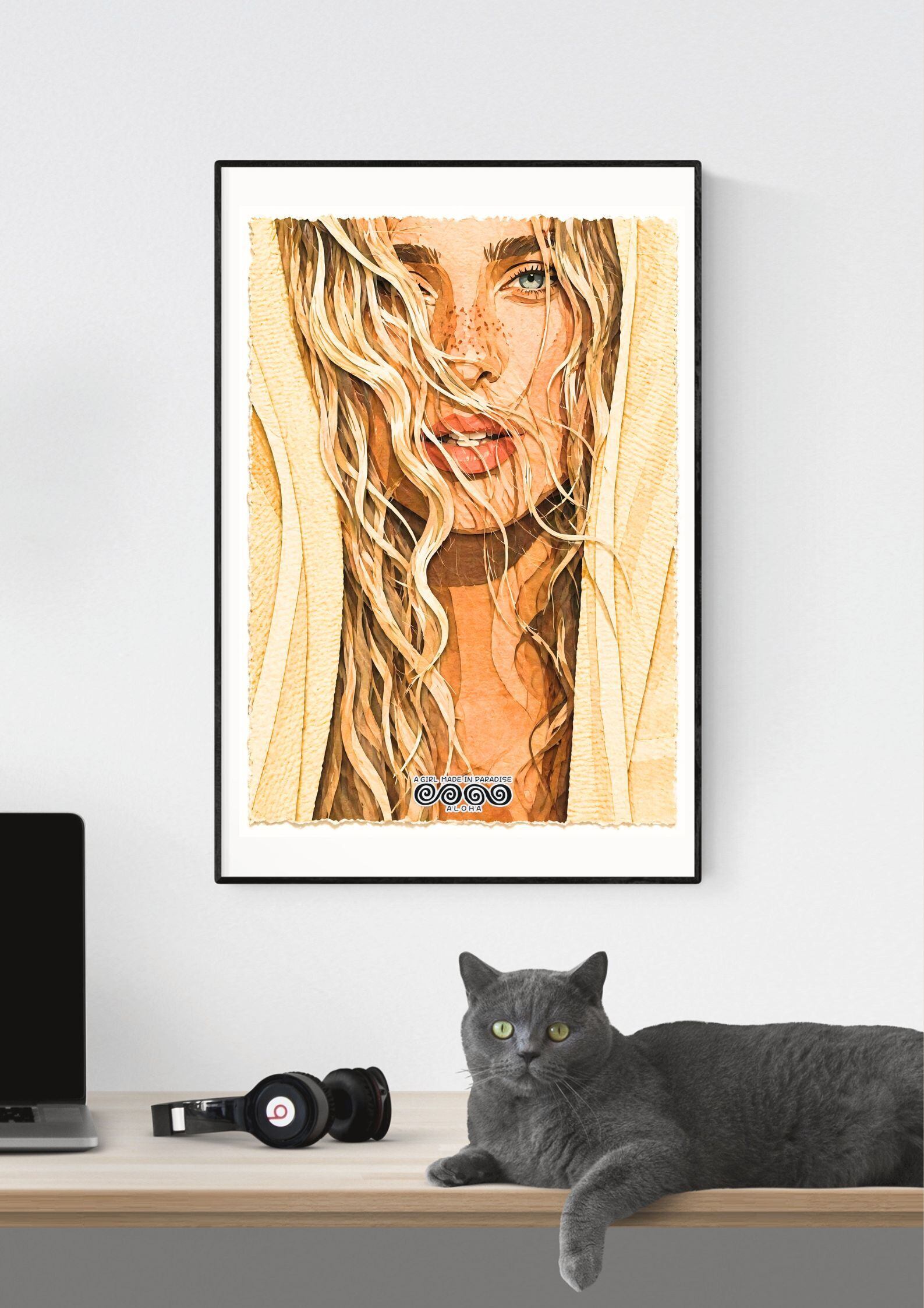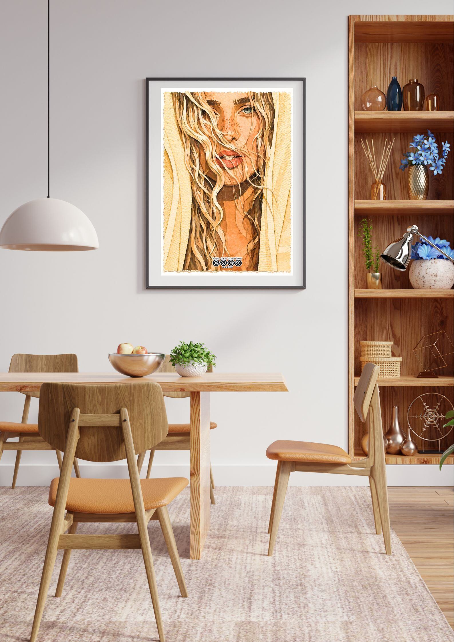 切り絵アートポスター A GIRL MADE IN PARADISE|女性ポートレート・ハワイ・サーフ・ヴィンテージ調 A2 高品質プリント