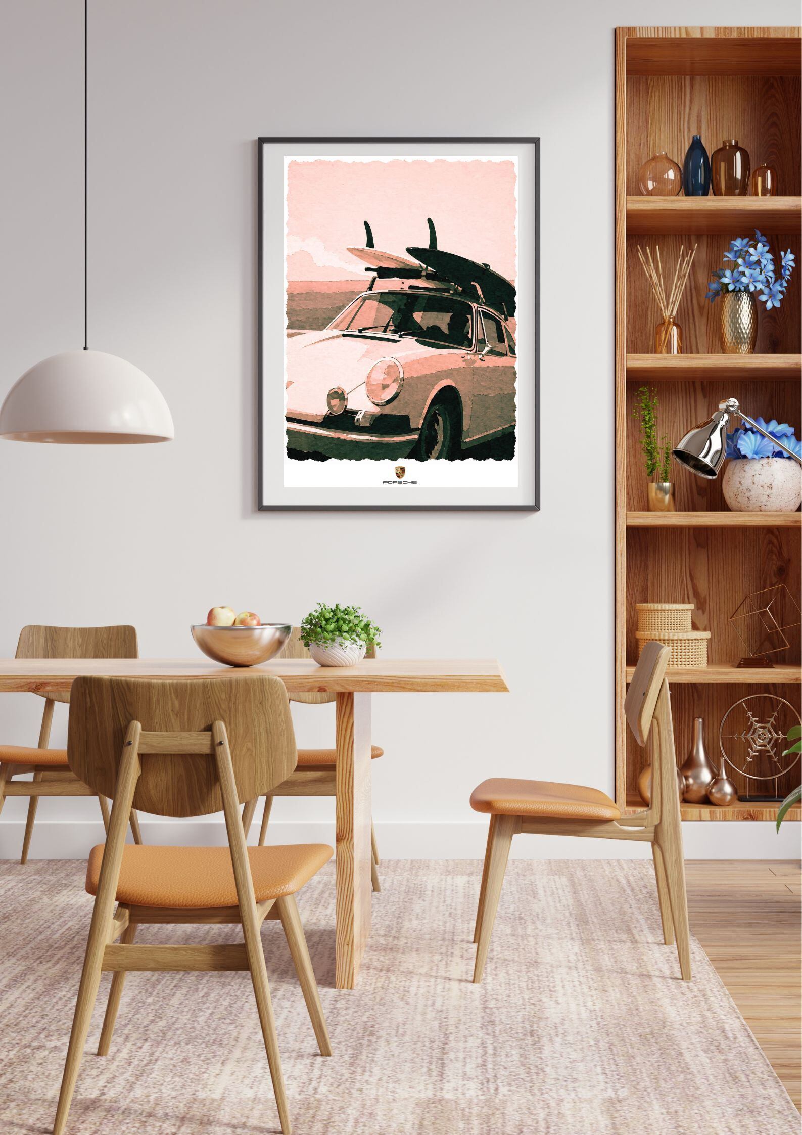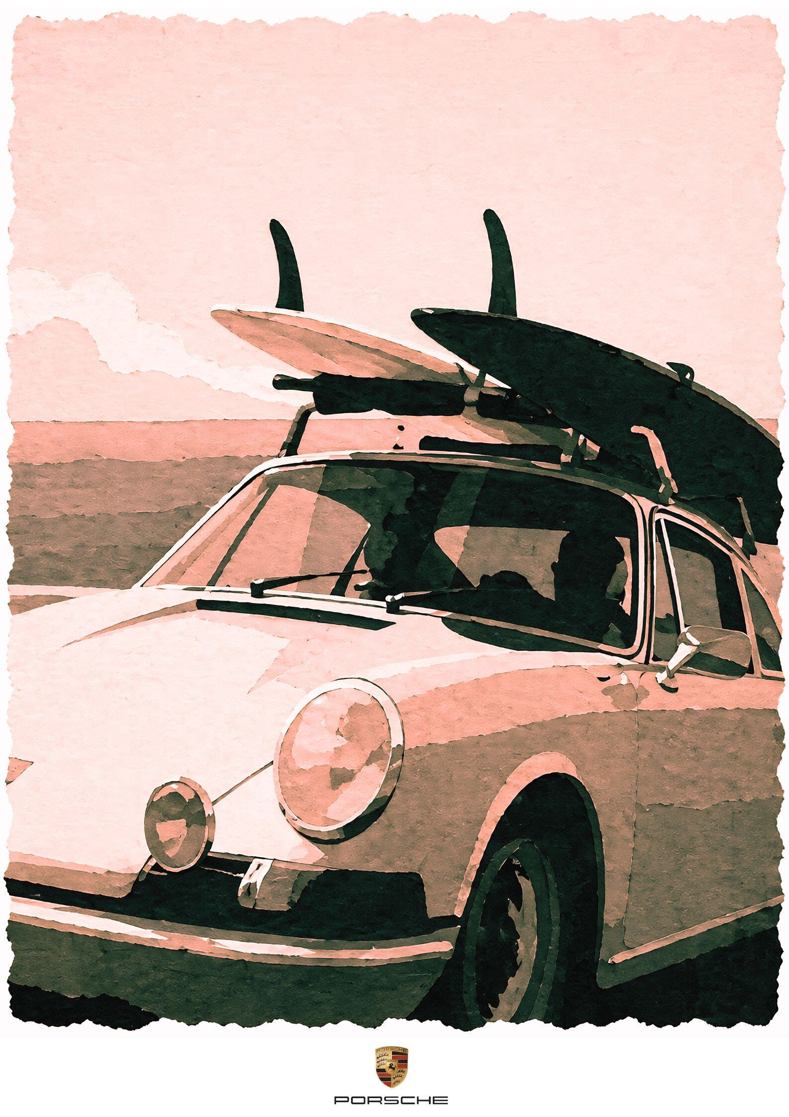 PORSCHE 911 サーフスタイル|ミニマルカラー表現・ヴィンテージカーインテリア A2ポスター