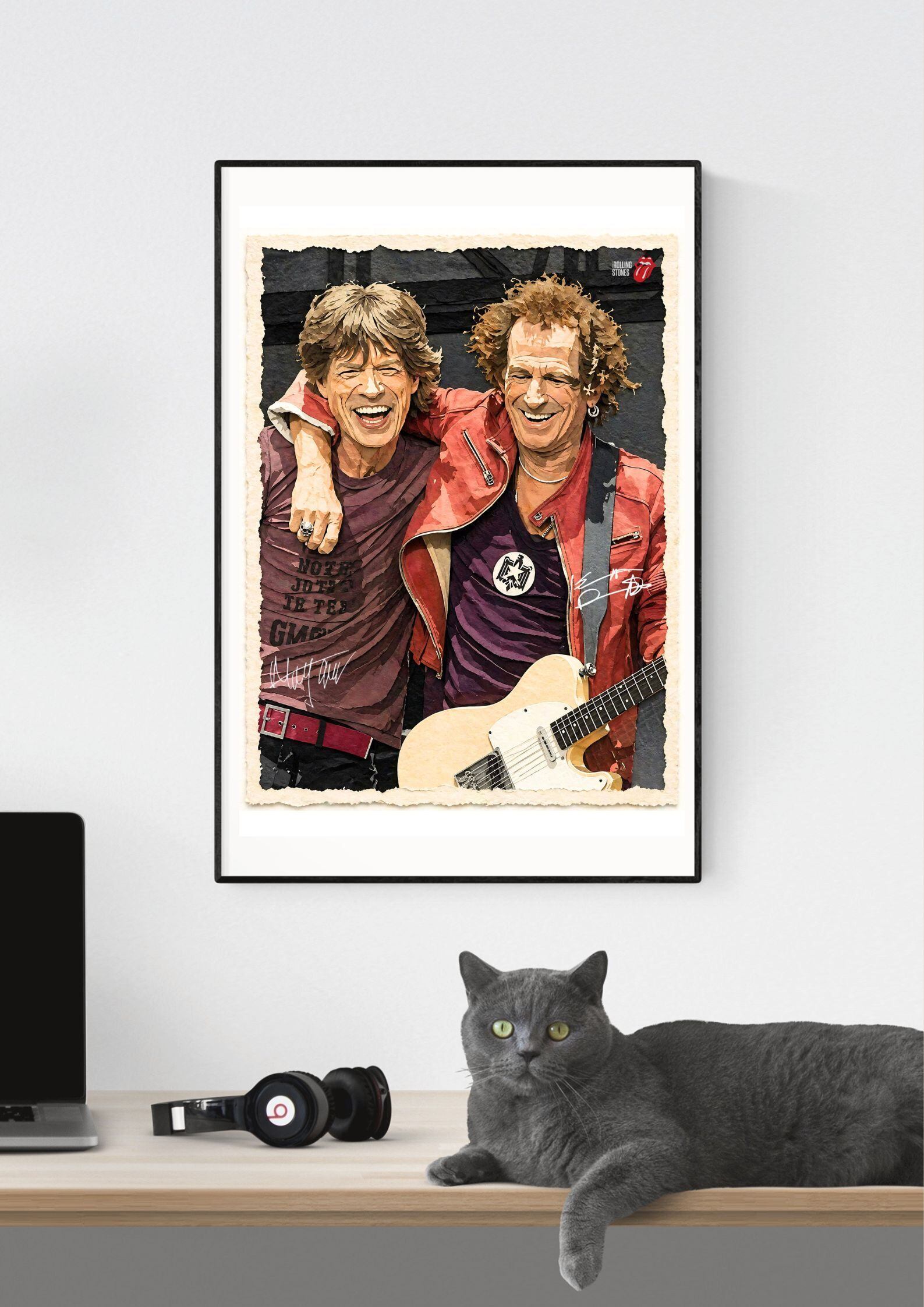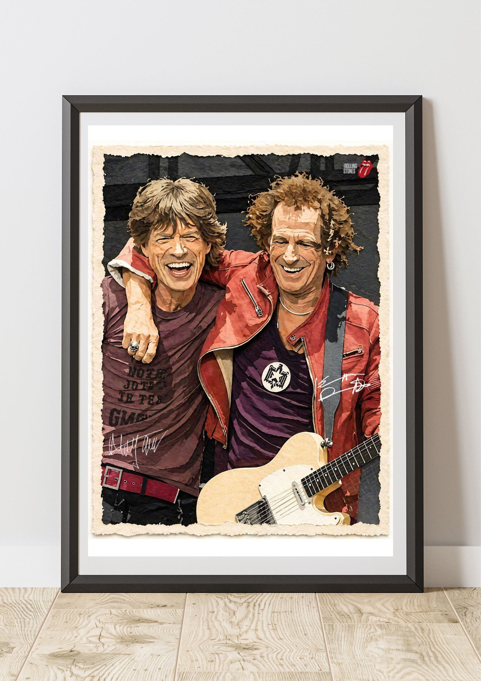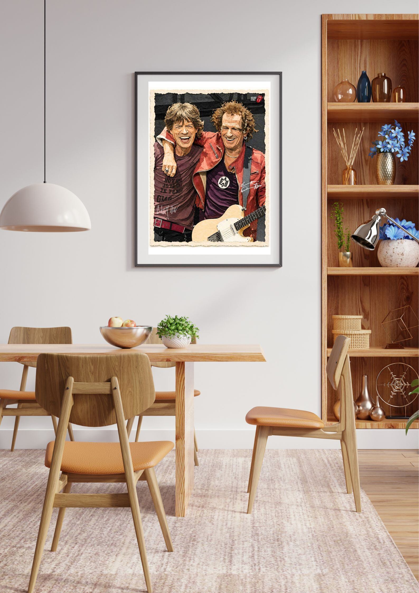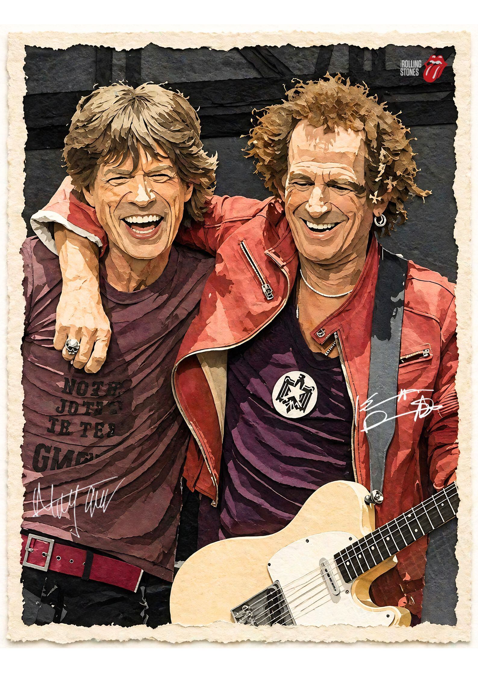 ミック・ジャガーとキース・リチャーズを想起させる二人の関係性をモチーフに、ライブの高揚感と一体感を切り絵で表現したレプリカアートポスター。紙の質感とヴィンテージ加工により、視覚的な熱量とグルーヴを再現しています。飾ることで空間に躍動感が生まれ、音楽のある空間へと引き上げます。見るたびに気分が高まり、部屋全体の雰囲気を積極的に変化させる力を持つ一枚です。